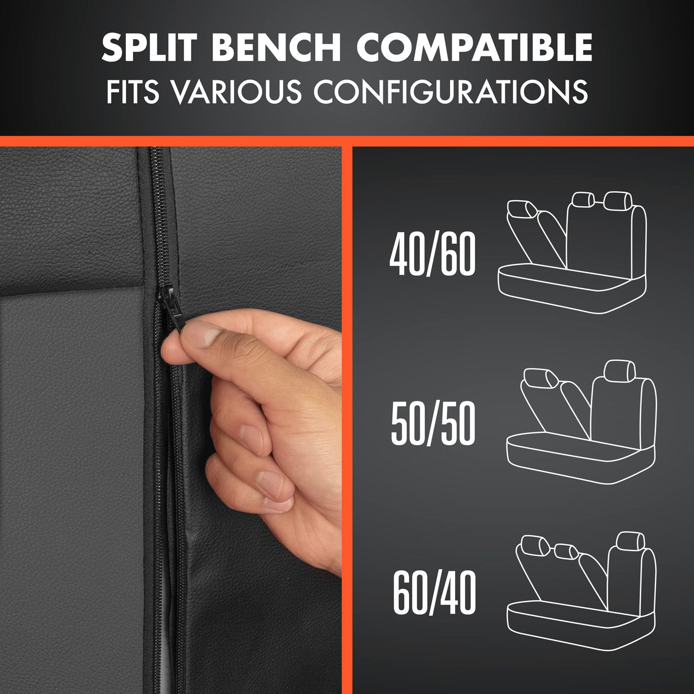 BDk Faux Leather Car Seat Cover Full Set - Front & Rear Split Bench Charcoal Seat Covers For SUV & Truck Seat Covers, Airbag Com