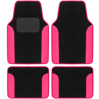 Bdk Hot Pink Carpet Car Floor Mats - Two-Tone Faux Leather Automotive Floor Mats, Included Anti-Slip Features And Built-In Heel Pad, Stylish Floor Mats For Cars Truck Van Suv