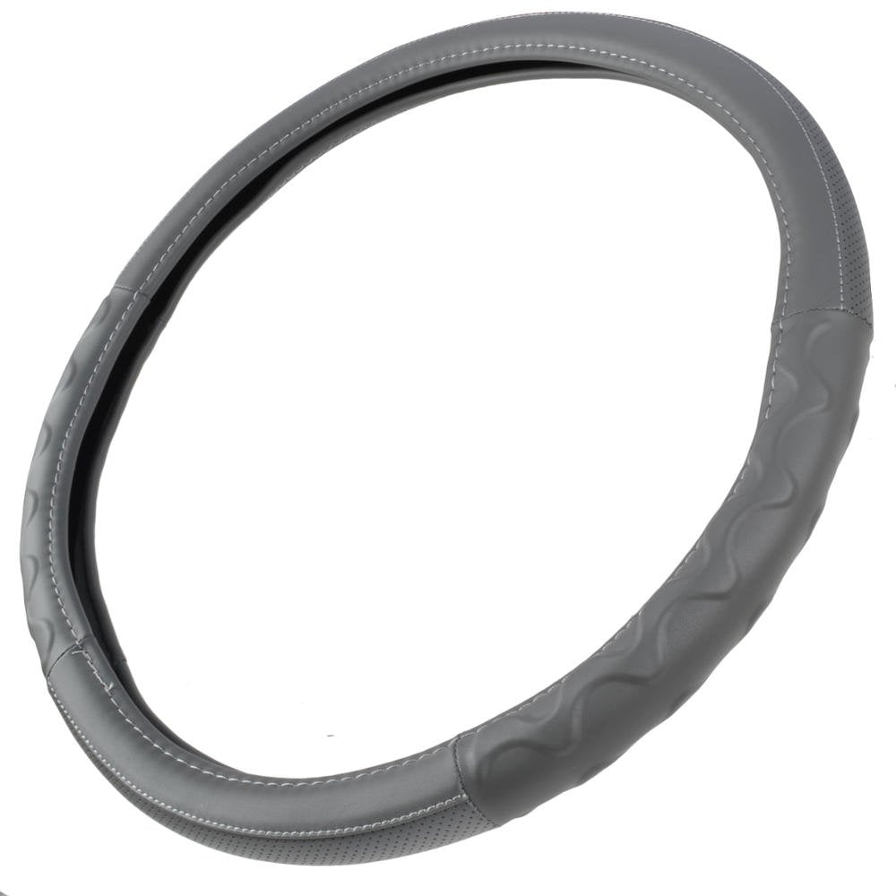Q: How does this steering wheel cover protect against heat and cold?A: This steering wheel cover insulates your hands from extreme temperatures thanks to its breathable PU leather fabric material, ensuring a comfortable grip during both hot and cold weather.