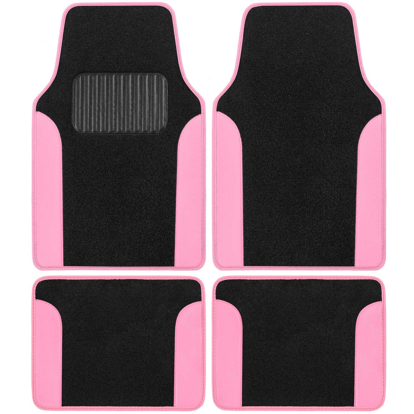BDK Floor Mats for Cars, Two-Tone Carpet Car Floor Mats with Faux Leather Accents, Automotive Floor Mat Set with Built-In Heel Pad, Stylish Interior Car Accessories (Pink).