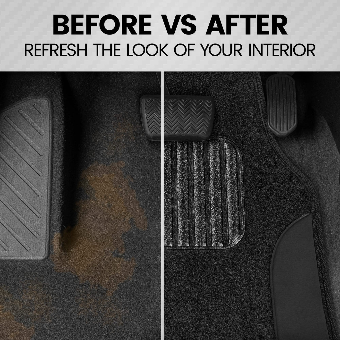 BDK Premium PolyPro Car Seat Covers Full Set with Front & Back 2-Tone Matching Carpet Floor Mats:Introducing our universal fit 2-tone car seat covers and carpet automotive floor mats complete set, the perfect blend of style, comfort, and protection for your vehicle. Includes front and back matching seat covers and floor liners offering full coverage for your vehicles interior. Whether you're upgrading the look of your vehicle or providing an extra layer of protection for your seats and car floors, they are the ideal choice.The seat covers & car mats feature stitched accents that enhance your vehicle's interior, giving it a fresh, stylish look. The two-tone color scheme complements any car interior, adding a pop of color while maintaining a sophisticated appearance. Whether you prefer a classic, neutral tone or a bold contrast, these interior protectors will elevate your vehicles aesthetic without compromising on functionality.The Universal Fit design ensures that these covers are compatible with a wide range of vehicle models, including trucks, cars, SUVs, and minivans. Designed with adjustable straps and a flexible material, they provide a secure and customized fit. Some slight adjustments may be needed to achieve the perfect look for your specific vehicle.These seat covers are made from high-quality, durable microfiber polyester material that offers excellent protection for your seats. They shield against spills, stains, dirt, and wear and tear, keeping your car's interior looking fresh and new.A few examples of make and models these car seat covers and floor mats will fit include: Ford (Explorer, Ranger, Escape, Expedition, Fusion, Mustang), Toyota (Tacoma, Rav4, Highlander, Prius, Camry, Corolla), Chevrolet, Dodge, Honda (Civic, Accord, CRV, Pilot, Odyssey, HR-V), Nissan (Rogue, Altima, Titan), Jeep (Wrangler, Grand-Cherokee), Subaru, Hyundai, BMW, Mercedes, Lexus and more!