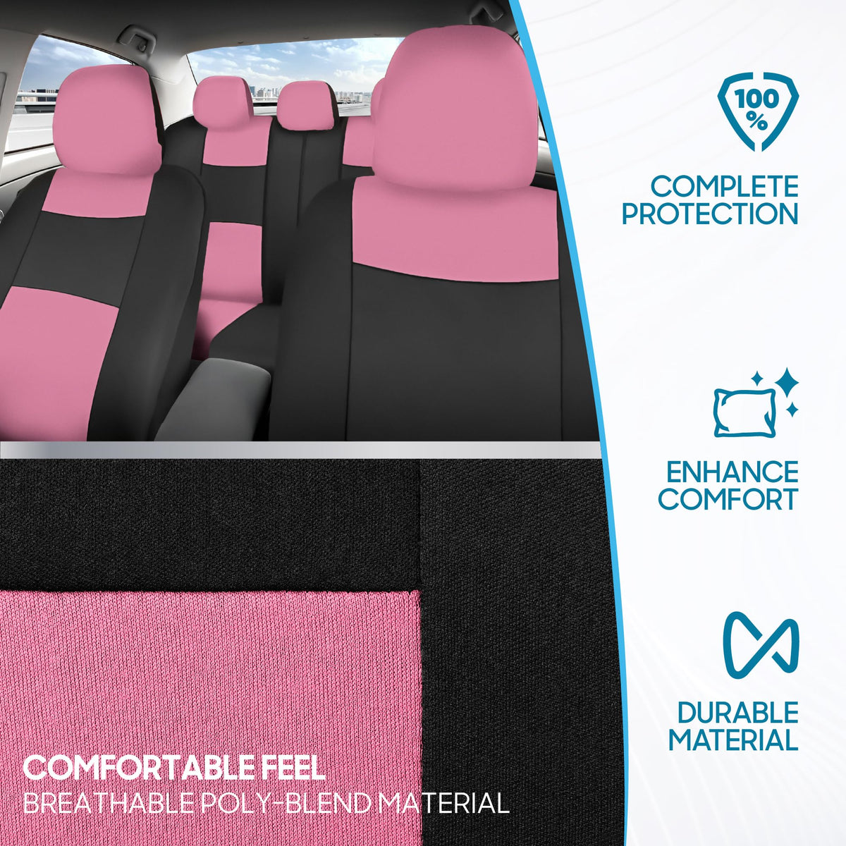 BDK PolyPro Car Seat Covers Full Set in Pink on Black, Front and Rear Split Bench Seat Covers for Cars, Easy to Install Car Seat