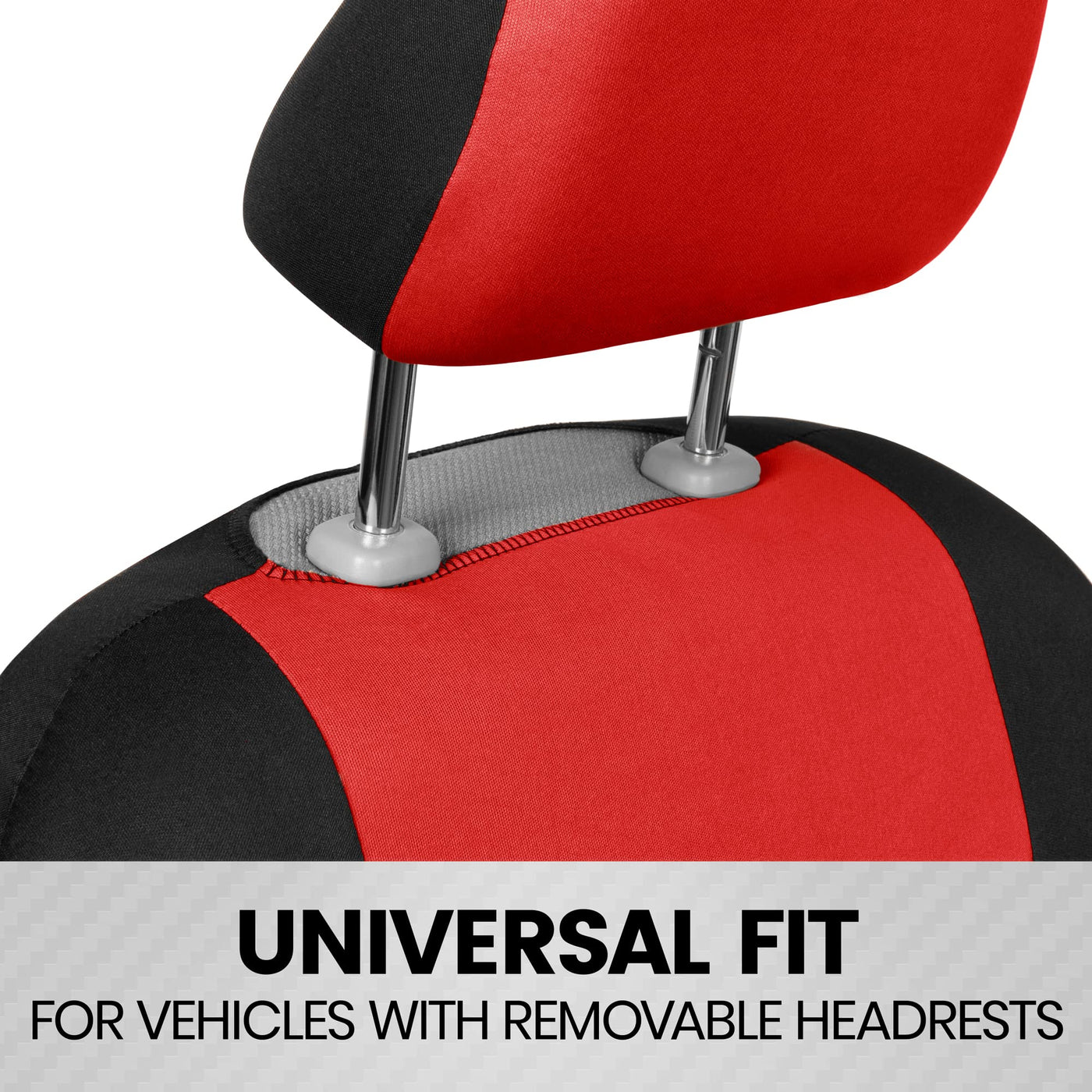 Bdk Polypro Car Seat Covers Full Set In Red On Black - Front And Rear Split Bench Seat Covers, Easy To Install, Accessories For Auto Trucks Van Suv