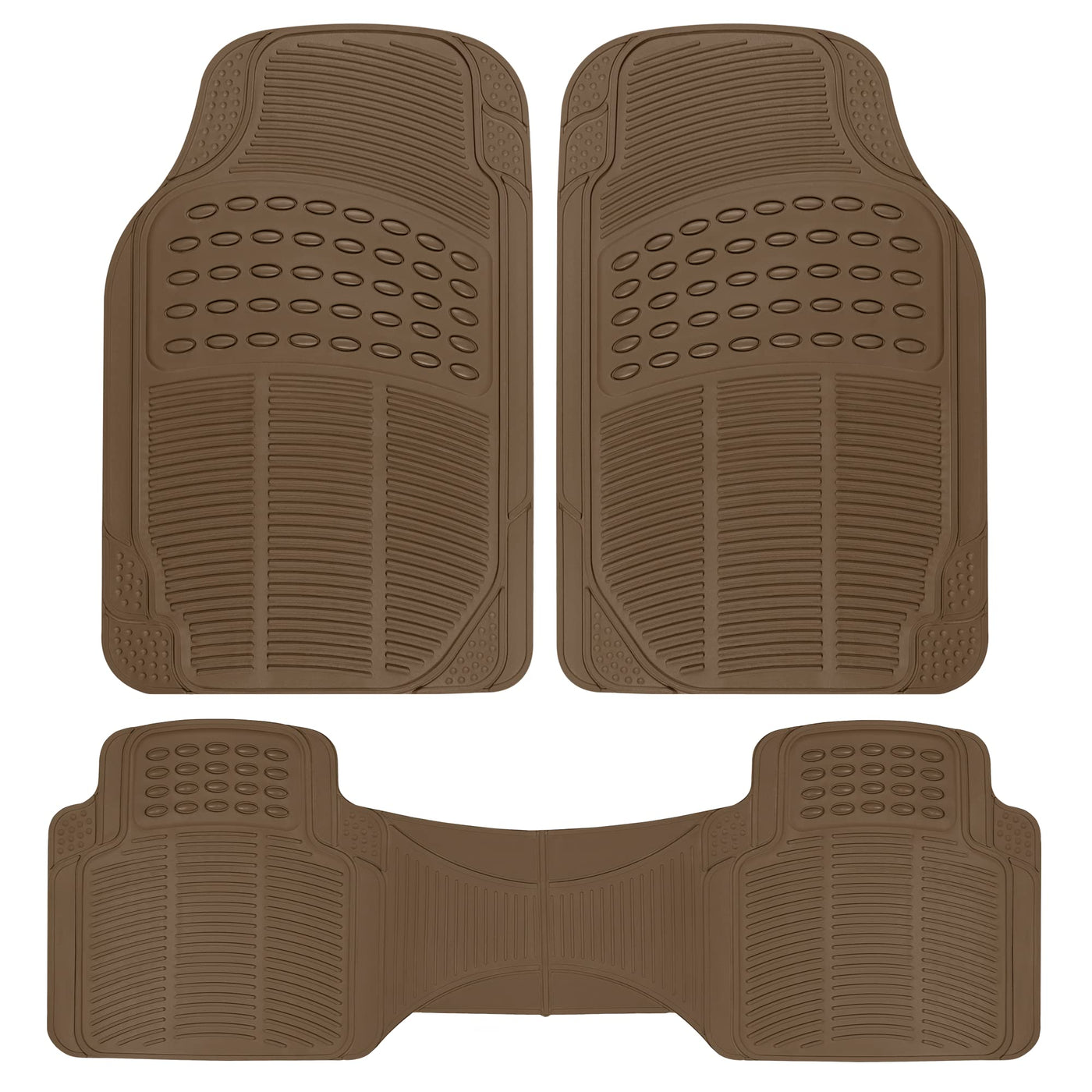 Bdk Proliner Floor Mats For Cars Trucks Suv, 3-Piece All-Weather Car Mats With Universal Fit Design, Durable Car Floor Mats With Capture Ridges, Waterproof Rubber Floor Mats For Cars (Beige)