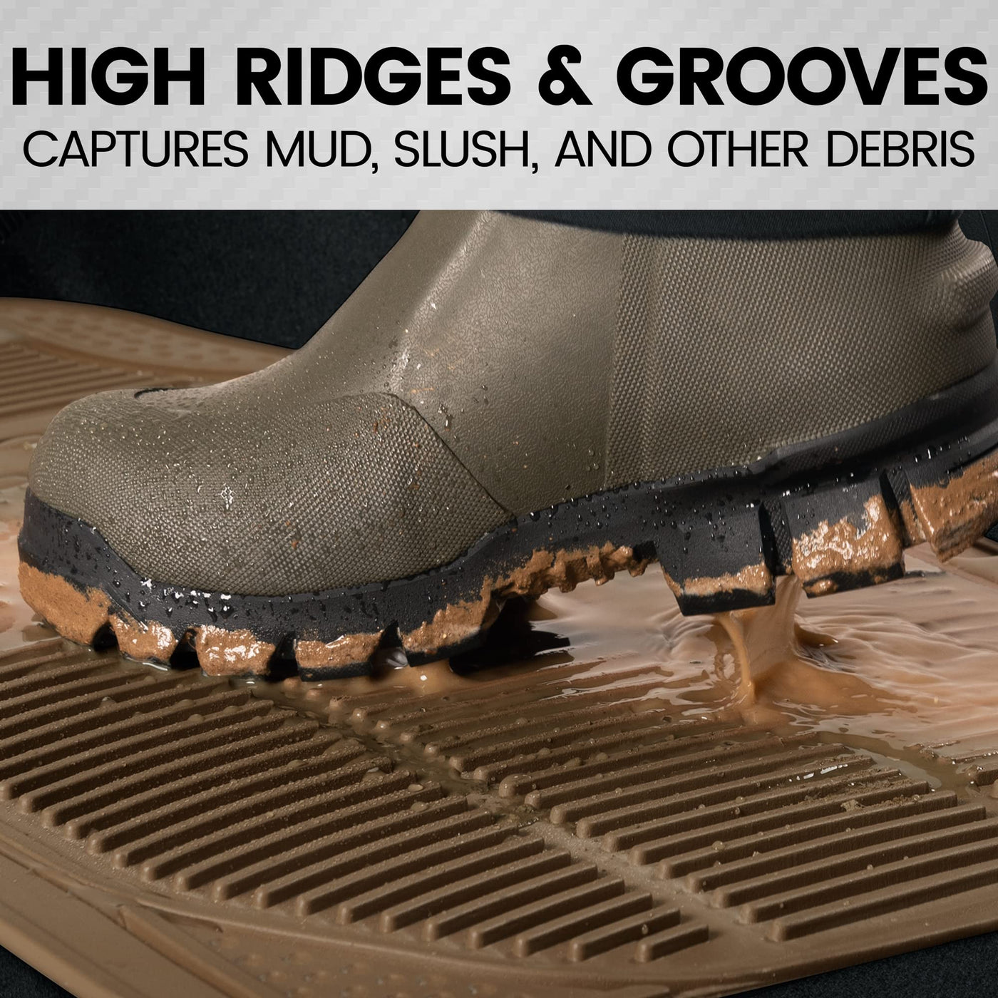 Q: Do these floor mats provide protection against spills and mud?A: Yes, these mats are built for protection against spills, dirt, mud, and debris. Their waterproof rubber material and capture ridges effectively trap liquids and prevent them from damaging your vehicle's floor.