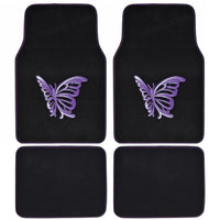 BDK Purple White Butterfly Design Carpet Car Floor Mats for Auto Van Truck SUV-4 Pieces Front & Rear Full Set with Rubber Backin