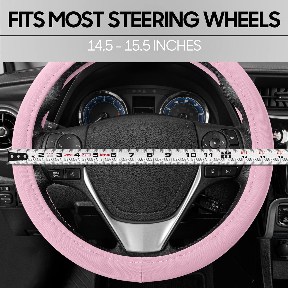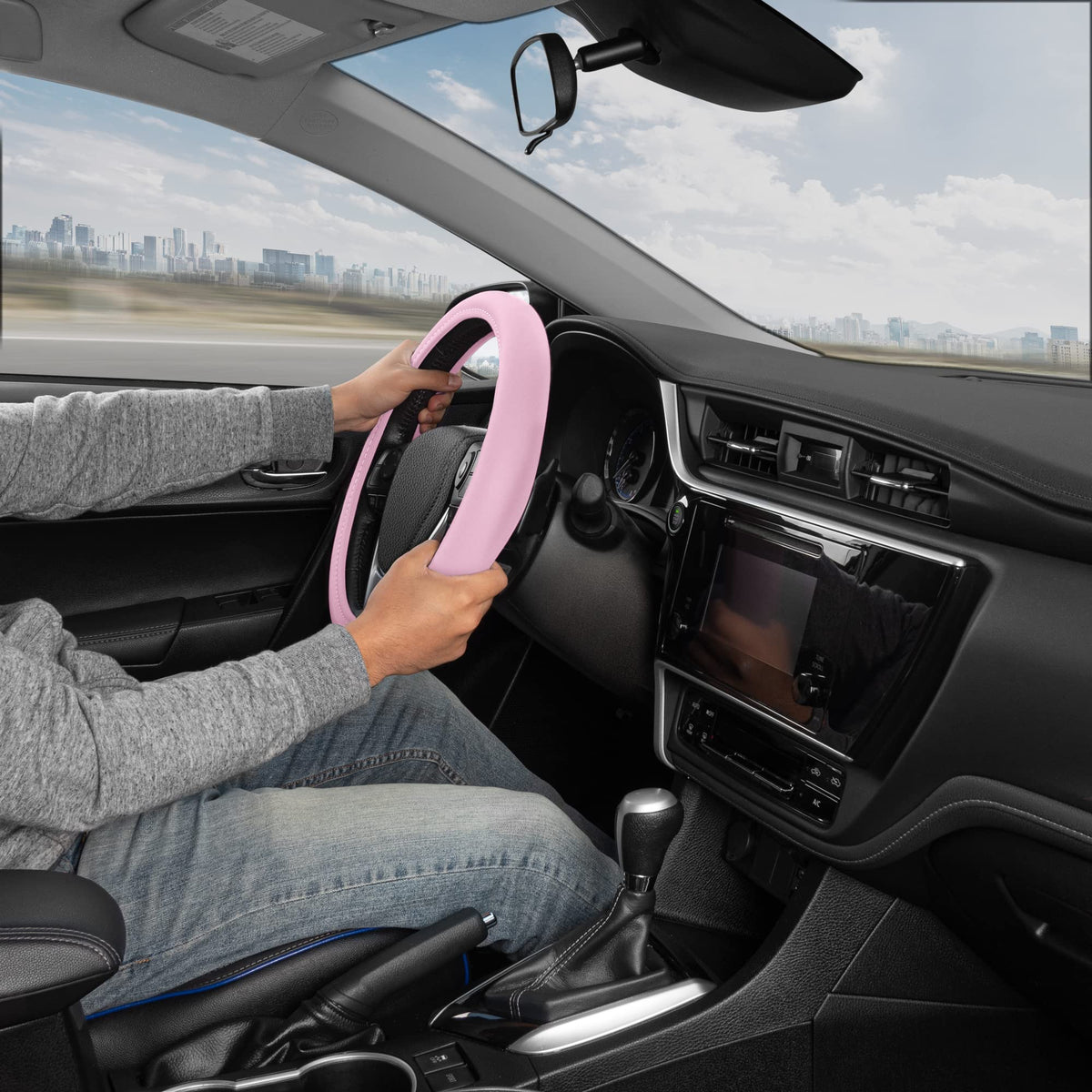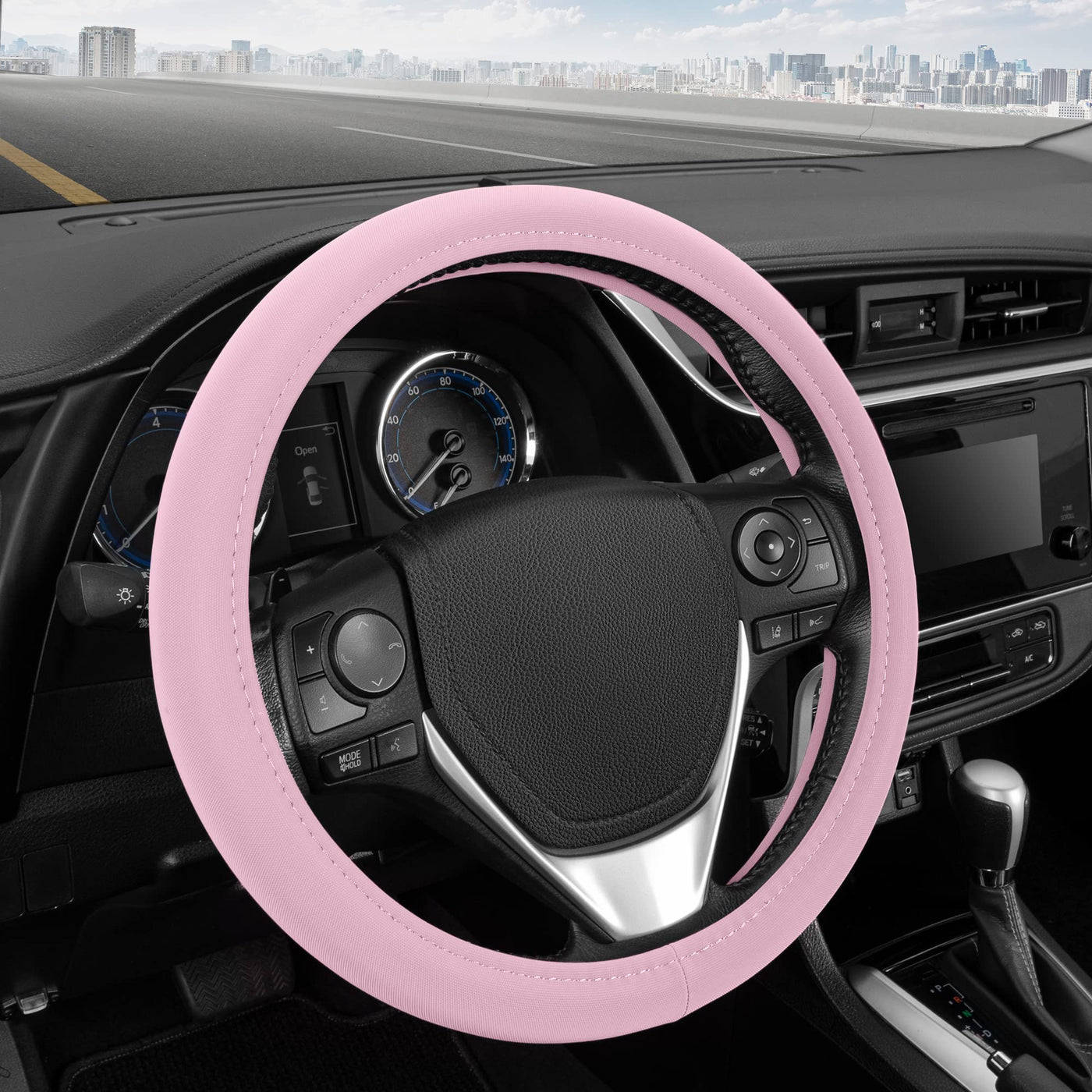 Bdk Ultra Soft Pink Steering Wheel Cover, Unisex Car Accessories Non-Slip Comfy Soft Grip Faux Leather Auto Steering Wheel Cover