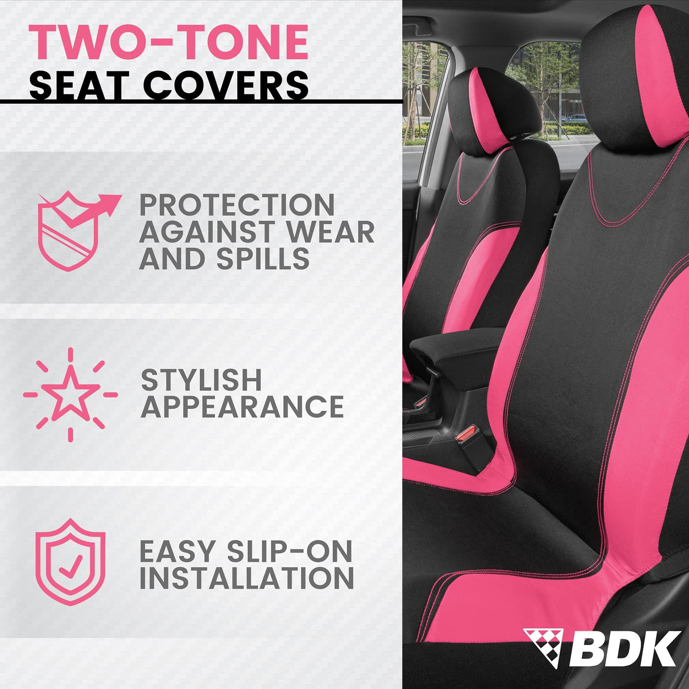 BDK UltraSleek Pink Seat Covers for Cars, Two-Tone Front with Matching Back Car Seat Cover, Made to Fit Most Auto Truck Van SUV,