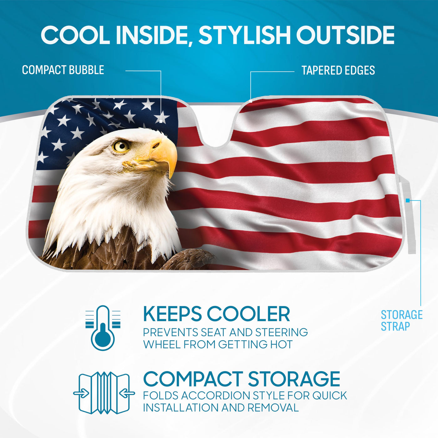 Bdk Usa Patriotic Eagle American Flag Sun Visor For Car Windshield Cover - Truck Window Shade 4Th Of July Car Flag Sun Visor For