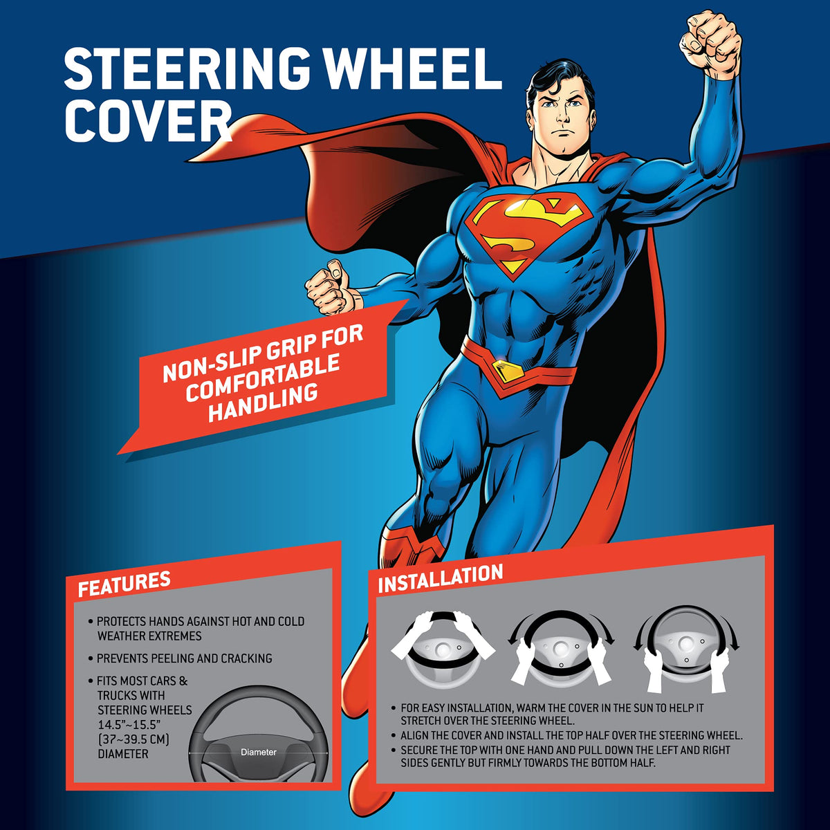 BDK Warner Bros DC Comics Batman Steering Wheel Cover - Ergonomic Grip, Universal Size 14.5-15.5 in, Protects and Insulates Your Wheel, Car Accessories for Car, Truck, Van, SUV