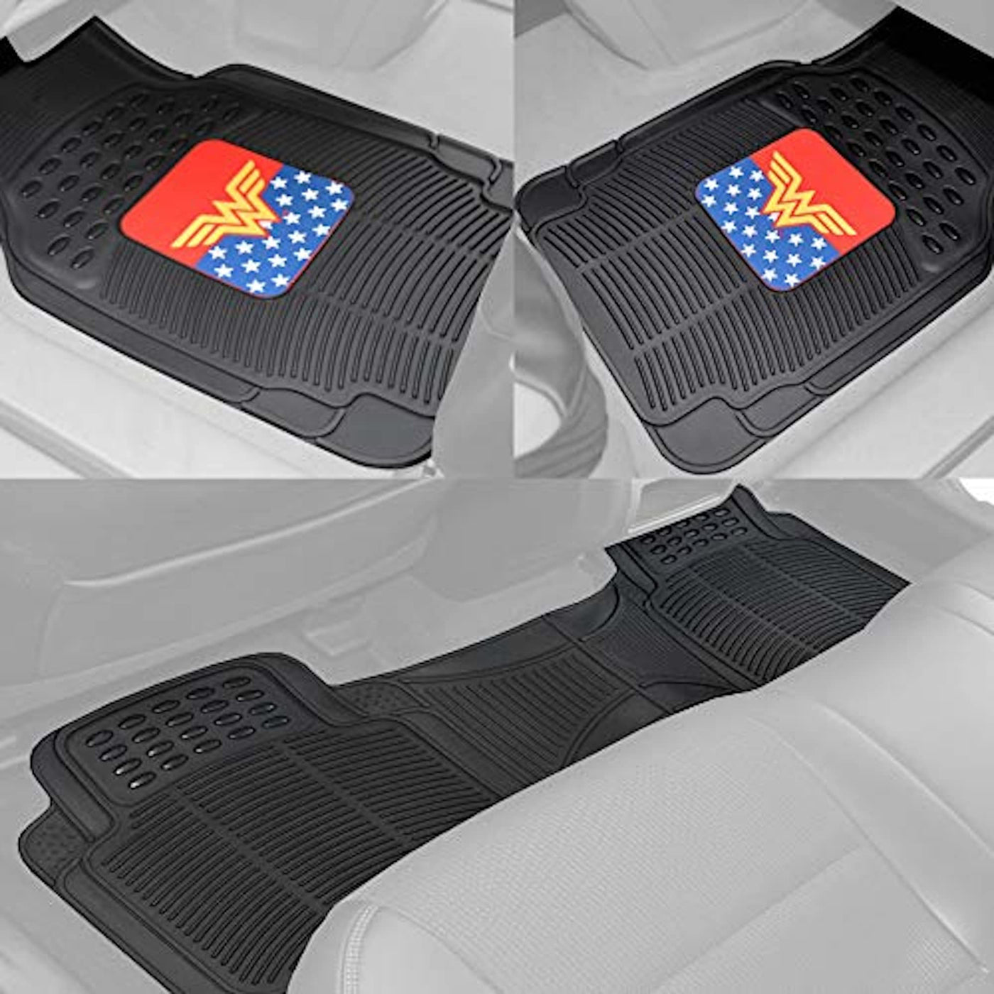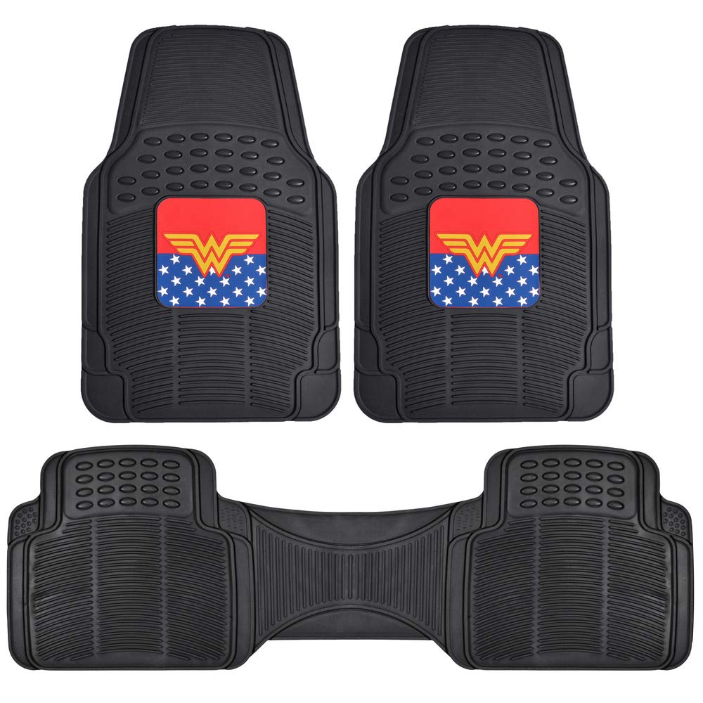 Bdk Warner Bros Dc Comics Classic Wonder Woman Car Accessories - Heavy Duty Rubber Floor Mats - Custom Fit, No-Slip Grip, All Weather, 3Pc Set 2 Front Car Mats 27 X 18 In, 1 Rear Liner 18 X 58 In