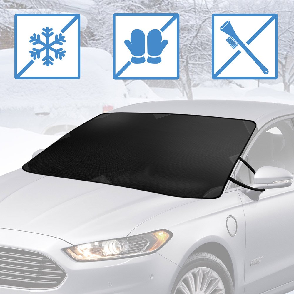BDK USA Car Windshield Ice & Snow CoverIntroducing the ultimate solution for winter weather by BDK automotive, our car windshield cover for ice and snow. Designed to save you time and frustration during those cold, snowy months, this premium cover ensures that your windshield stays clear, so you never have to deal with scraping off ice or snow again. Whether you're heading to work, running errands, or getting ready for a winter road trip, this cover is your reliable companion to keep your vehicle protected from the harshest winter conditions.Measuring 78 inches wide by 43 inches tall, this snow car cover is a perfect fit for most vehicle windshields. This windshield cover fits a wide variety of vehicles, including cars, vans, trucks, and SUVs. The universal fit design makes it easy to use on almost any vehicle, so you dont have to worry about compatibility. However, to ensure the best fit, its always a good idea to measure your windshield before use. Protect your wiper blades and say goodbye to spending long minutes scraping ice off your windshield in the coldThe cover stays securely in place, thanks to its side window flaps, which can be tucked inside your vehicle for added security when the cover is in use outdoors. This feature also helps to prevent theft, ensuring that your cover stays where it belongs, no matter how harsh the weather gets.A few examples of car or truck make and models this windshield cover for ice and snow will fit include: Ford (F150, F250, F350, Explorer, Ranger, Escape, Expedition, Fusion, Mustang), Toyota (Tacoma, Rav4, Highlander, Prius, Tundra, Camry, Corolla), Chevrolet (Silverado, Chevy Colorado, Traverse) Dodge (Ram, Charger, Challenger, Durango, Journey), Honda (Civic, Accord, CR-V, Pilot, Odyssey, HR-V, Nissan (Rogue, Altima, Frontier, Titan), Jeep (Wrangler, Grand-Cherokee), BMW (3 Series, X5, X3), Tesla and 100's more!
