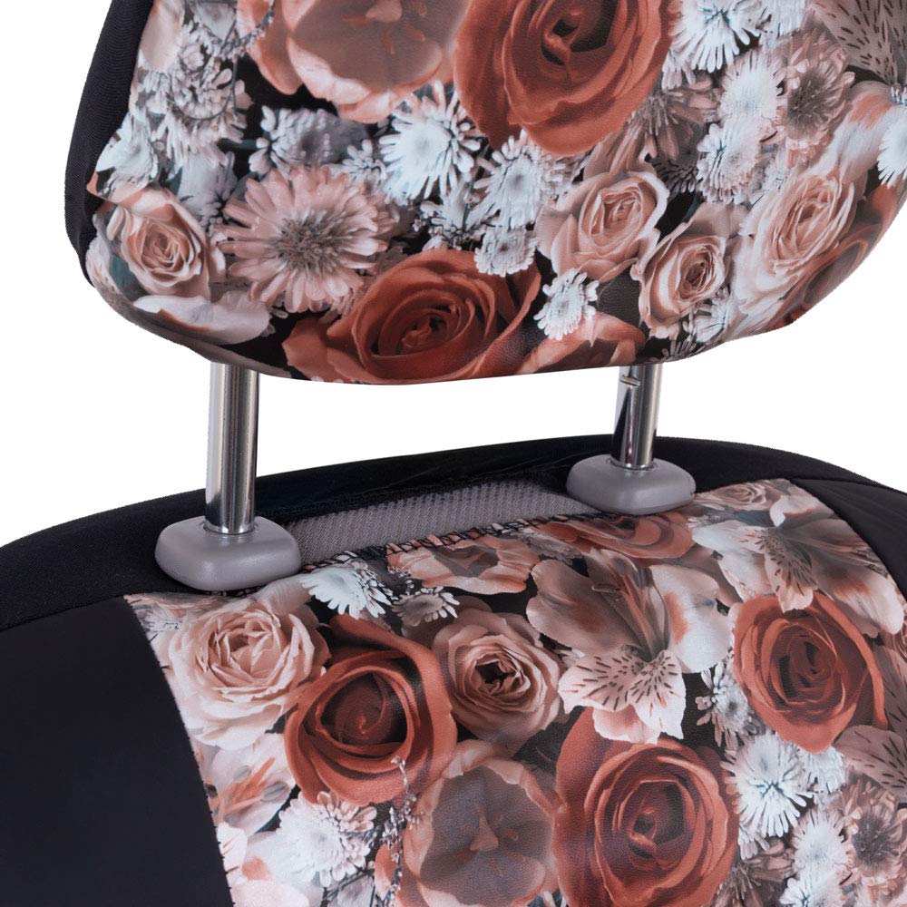 Bdkdusty Rose Floral Faux Leather Car Seat Covers For Front Seats, 2 Pack - Flower Pattern Front Seat Cover Set, Sideless Design