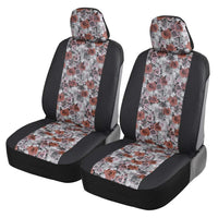 BDK White Floral Print Faux Leather Car Seat Covers, Front Seats Only - Flower Pattern Front Seat Cover Set, Sideless Design for Easy Installation, Universal Fit for Car Truck Van and SUV.