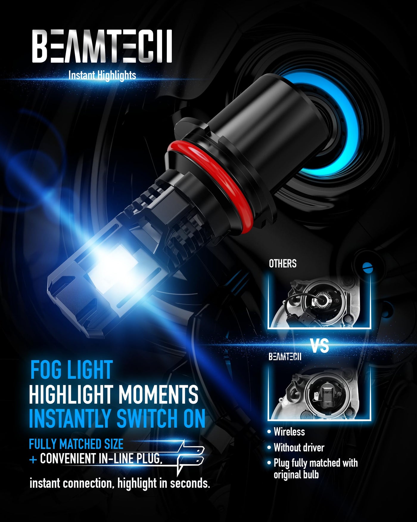 Silent Working: BEAMTECH 9007 fog boasts a fanless design, ensuring stable performance without any noise, providing a quieter and more enjoyable driving experience | Easy Installation: With a 1:1 bulb design, the 9007 fog light bulb requires no additional modifications or complex installation steps. Simply plug and play for hassle-free setup | Enhanced Visibility: Equipped with a luminous point similar to old bulbs, our 9007 fog light replaces dim lighting, significantly improving visibility during driving | Long-lasting Durability: Crafted from high materials, 9007 bulb offers a longer lifespan equivalent to 100 old bulbs. Say goodbye to frequent replacements and enjoy consistent performance | Instant Illumination: Featuring a simple design, the 9007/HB5 fog light delivers quick start-up with no delays, ensuring a reliable and stable lighting performance to light up the road ahead