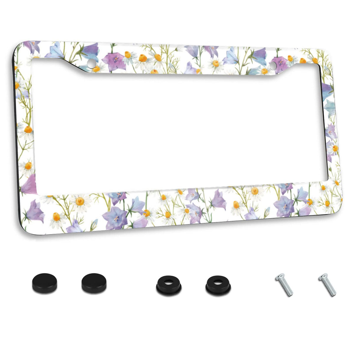 Beautiful Floral Bluebell Chamomile Flower License Plate Frame Car License Plate Stainless Steel Accessory License Plate Decor w