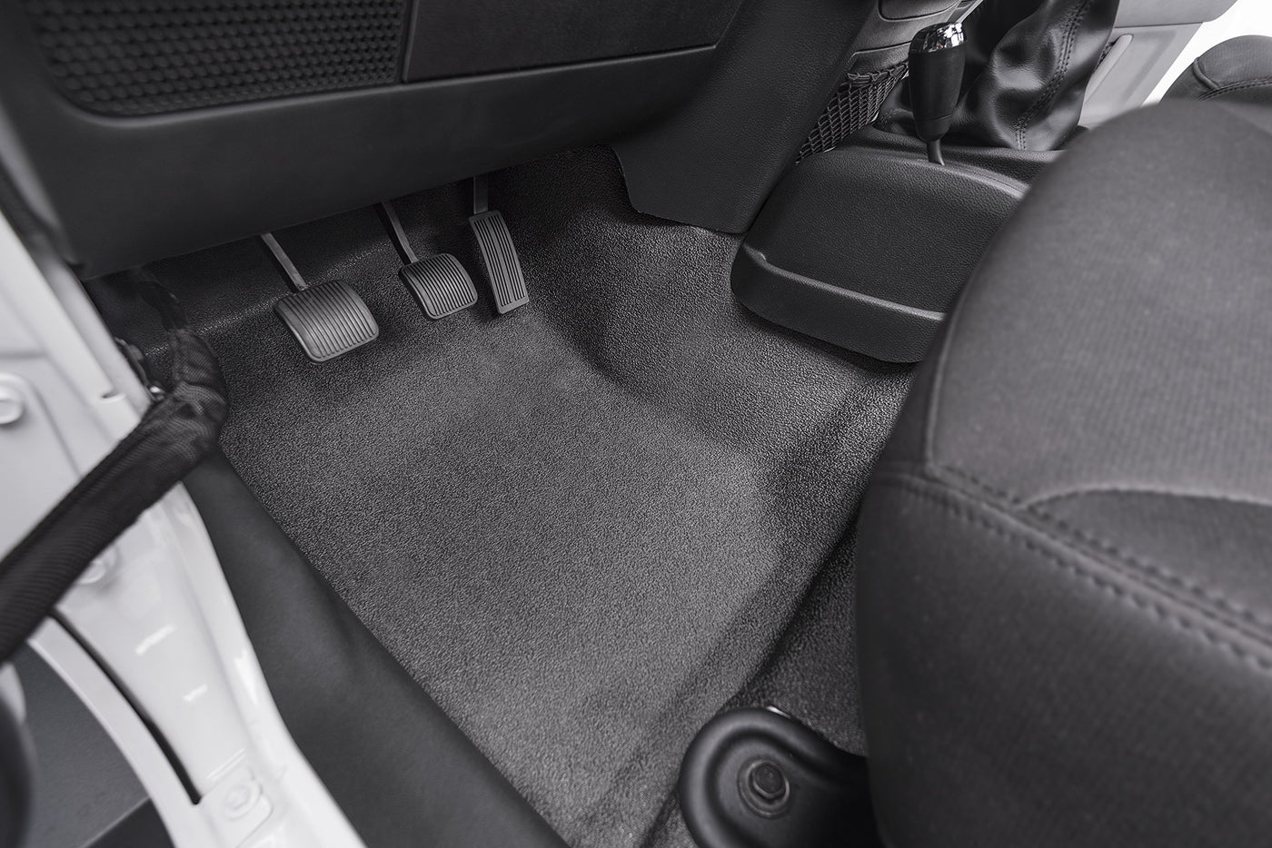 This 100% waterproof, fully custom-molded die cut system is sold separately as a front and rear kit and installs quickly without the need to remove any seat brackets or the center console. The BedRug material dries quickly, resists all harsh chemicals, and will not stain, stink, mold or mildew. The 1/4-inch polypropylene foam kit, with provided heat shields, insulates your interior from road noise and heat. Tailor made for a perfect fit in your Wrangler, the BedRug Floor delivers wall–to–wall coverage and looks like it was installed at the factory. Speaking of installing, about 30 minutes is all it takes to dress your dune surfer with hook and loop fasteners. Once it's in place, its plush pile also helps block heat and noise from creeping up into your cockpit. And, when it gets gunked up, just pull the pieces out and hose them down.
