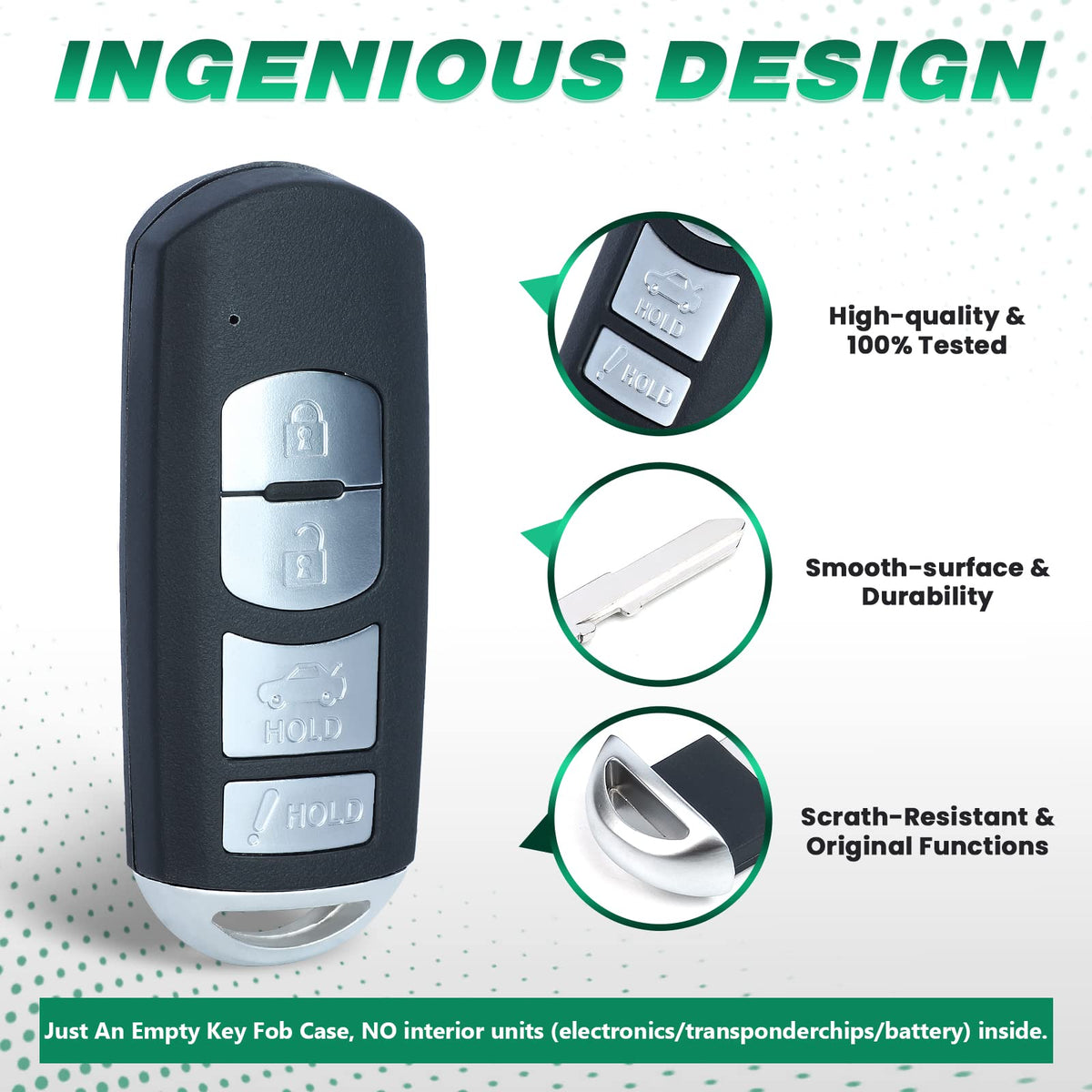 Beefunny Replacement Remote Car Key Shell Case Fob 4 Button For Mazda 3 6 2014-2018 Ske13D-01 (2)
