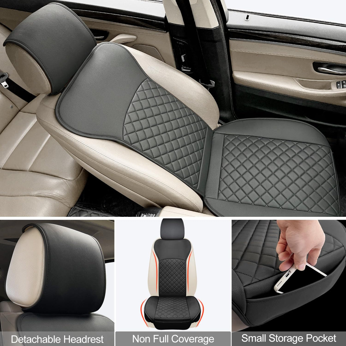 Beitk 2 Pack Leather Front Seat Covers, Universal Sideless Car Seat Protectors, Waterproof Automotive Seat Cover For Most Cars T