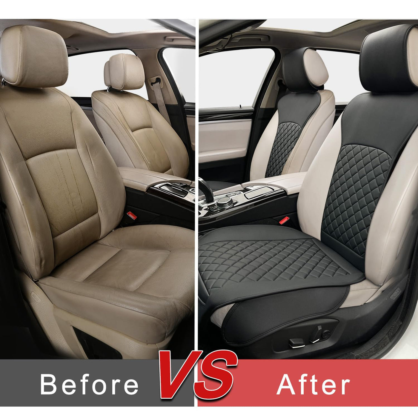 Q: Are these seat covers compatible with my car?A: Yes, the BEITK Leather Front Seat Covers are designed as universal sideless protectors, making them compatible with most cars, trucks, and SUVs. They fit a variety of seat styles while allowing for the functionality of airbags and seat belts.