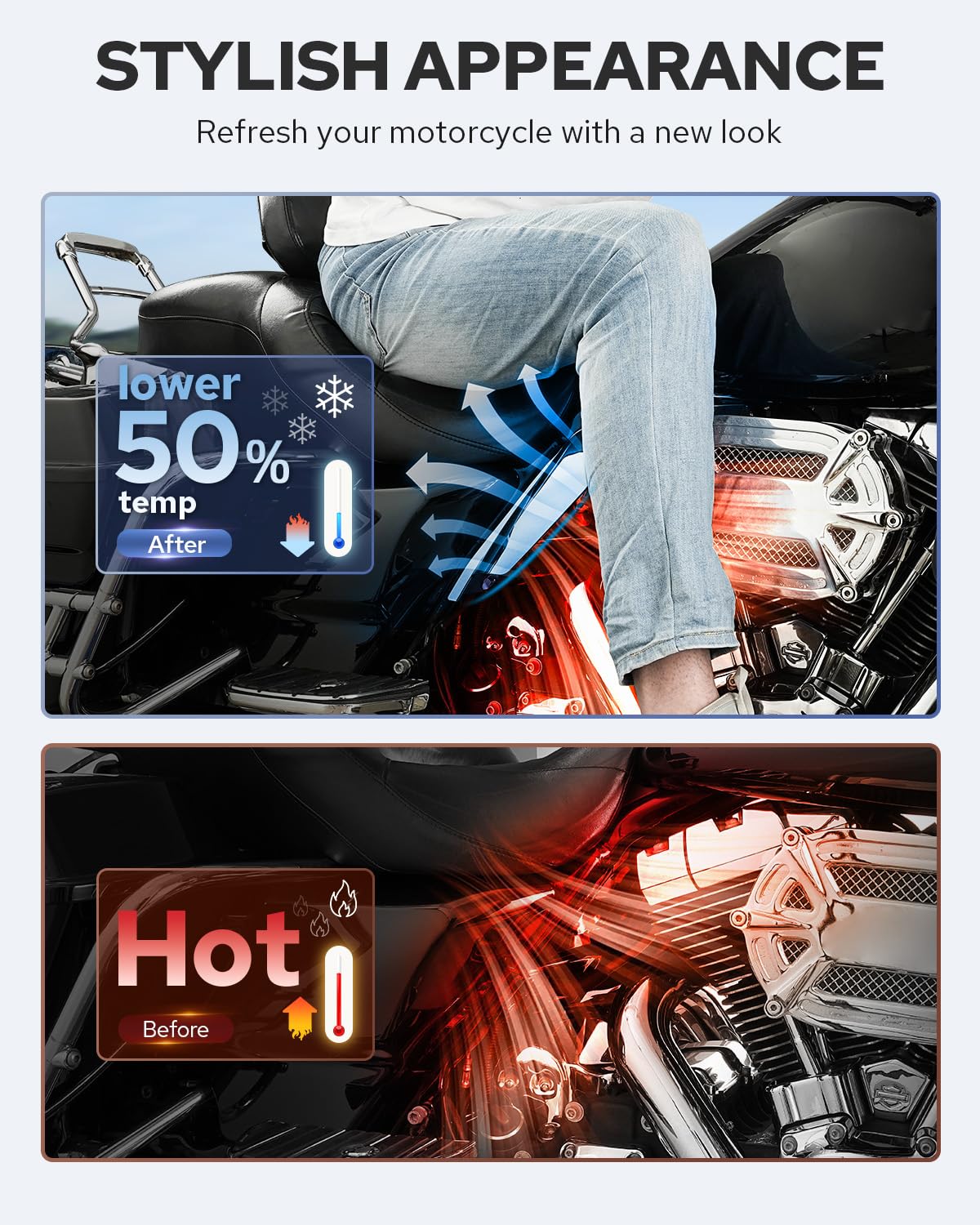 Compatibility: Fits Harley Davidson Touring models (2009-2024) equipped with CoolFlow Fan Kit P/N 26800120, 26800121, and 26800128.