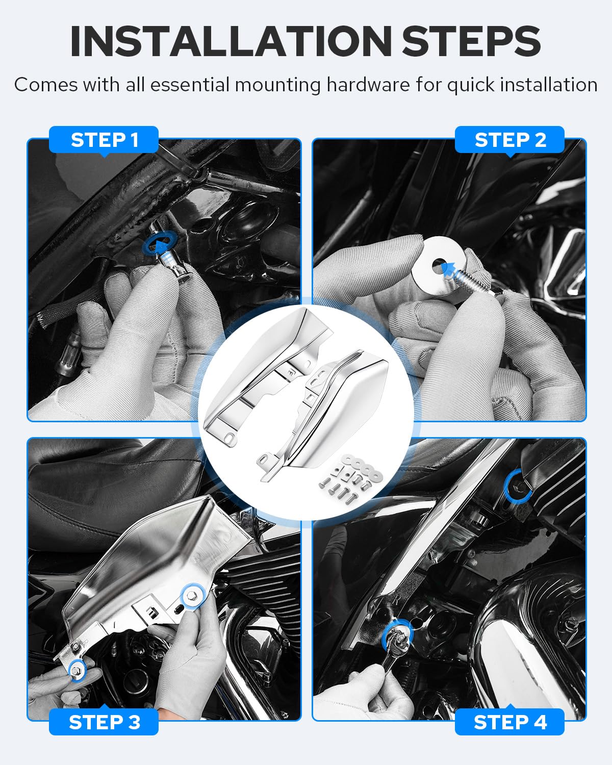 Constructed from durable ABS plastic, this air deflector is engineered for long-lasting performance and is resistant to rust and cracking. The sleek chrome finish adds a stylish touch to your motorcycle while ensuring compatibility with a variety of Harley Davidson models, including Road King, Electra Glide, Ultra Limited, Street Glide, Road Glide, and Tri Glide. Installation is straightforward, as the product comes with all necessary mounting hardware. This makes it an excellent choice for riders seeking both functionality and ease of use.
