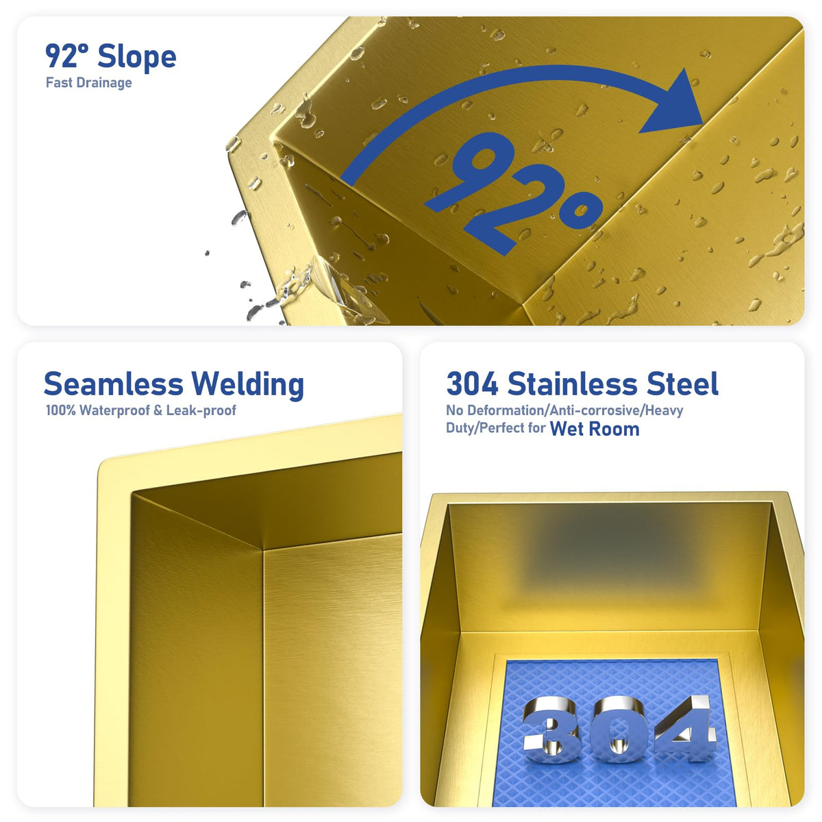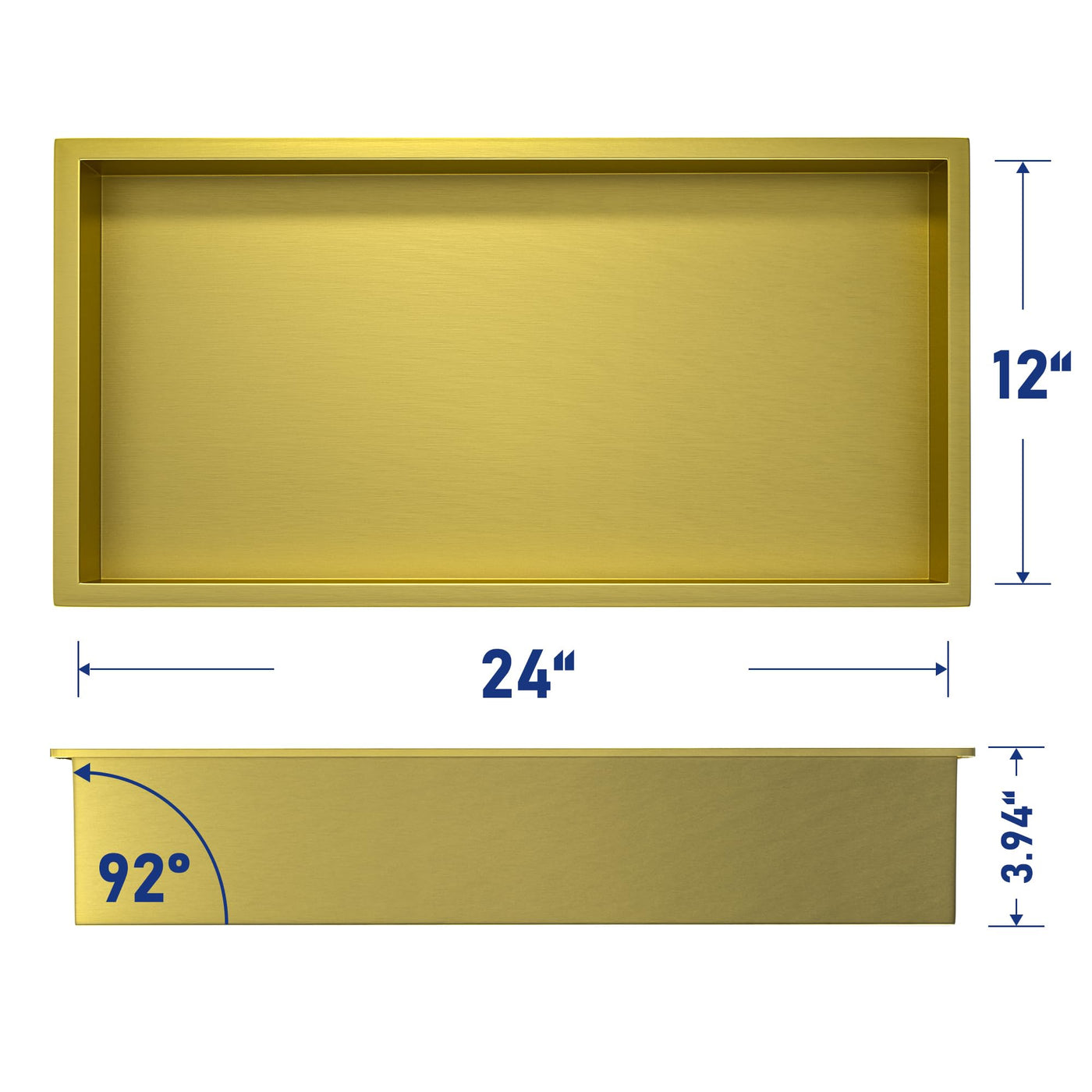 Bernkot Stainless Steel Shower Niche 24' X 12' Gold No Tile Needed Recessed Shower Shelf For Bathroom Storage Over Mount Installation