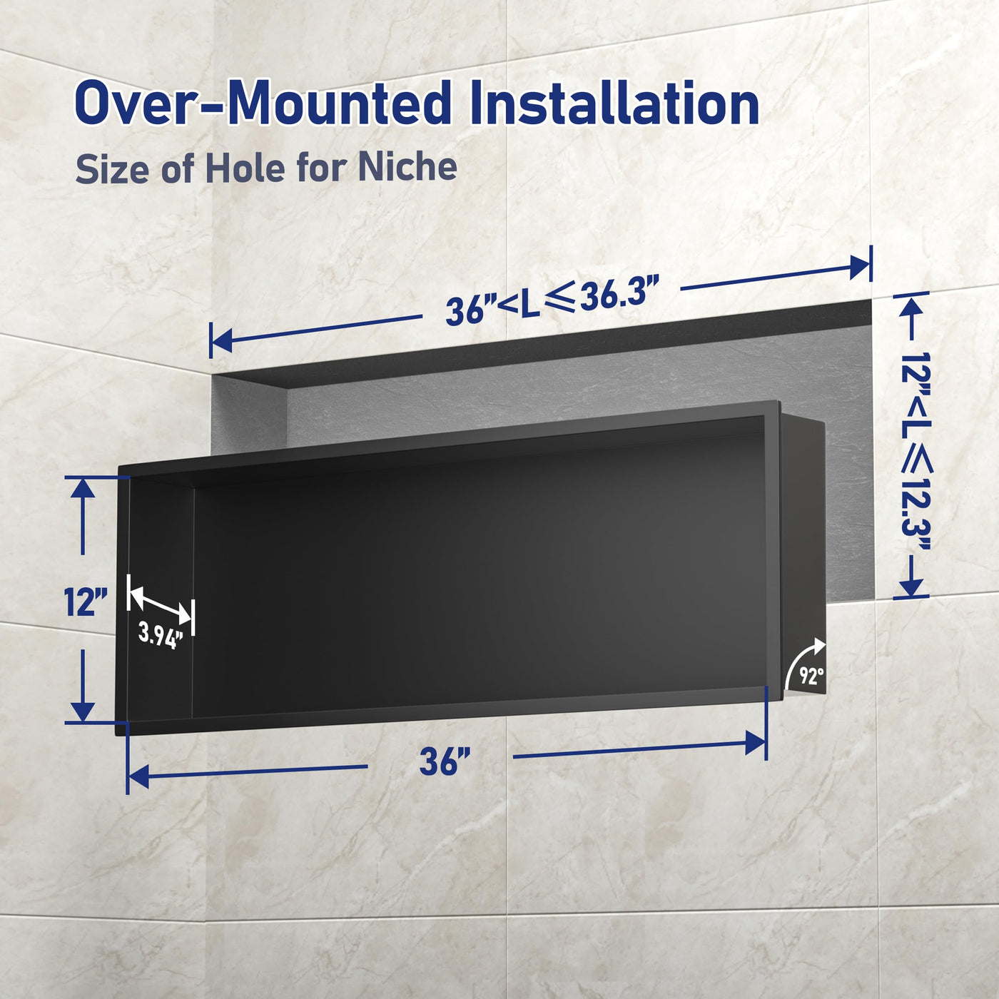 Bernkot Stainless Steel Shower Niche 36' X 12' Matte Black No Tile Needed Recessed Shower Shelf Wall Niche For Bathroom Storage Over Mount Installation