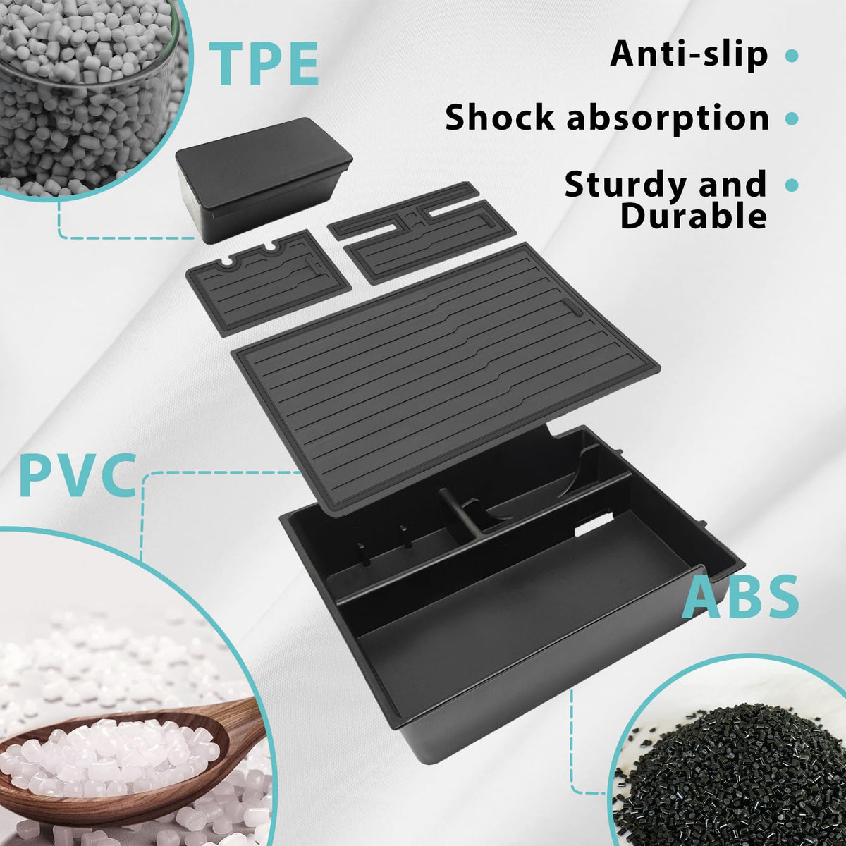 BestEvMod Center Console Organizer Tray Compatible with 2022-2025 Rivian R1T/R1S Removable Coin Holder Armrest Storage Box ABS Material with PVC Trim Accessories (V3 Black)