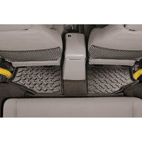 Q: How do I clean and maintain these floor mats?A: Cleaning is simple; just remove the mats from your Jeep, hose them down, and let them dry. Their all-weather material allows for easy maintenance.