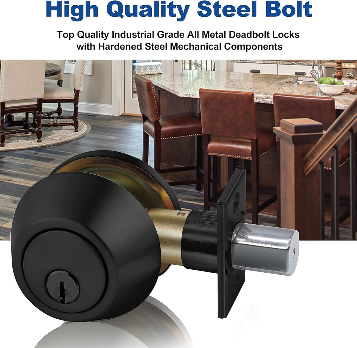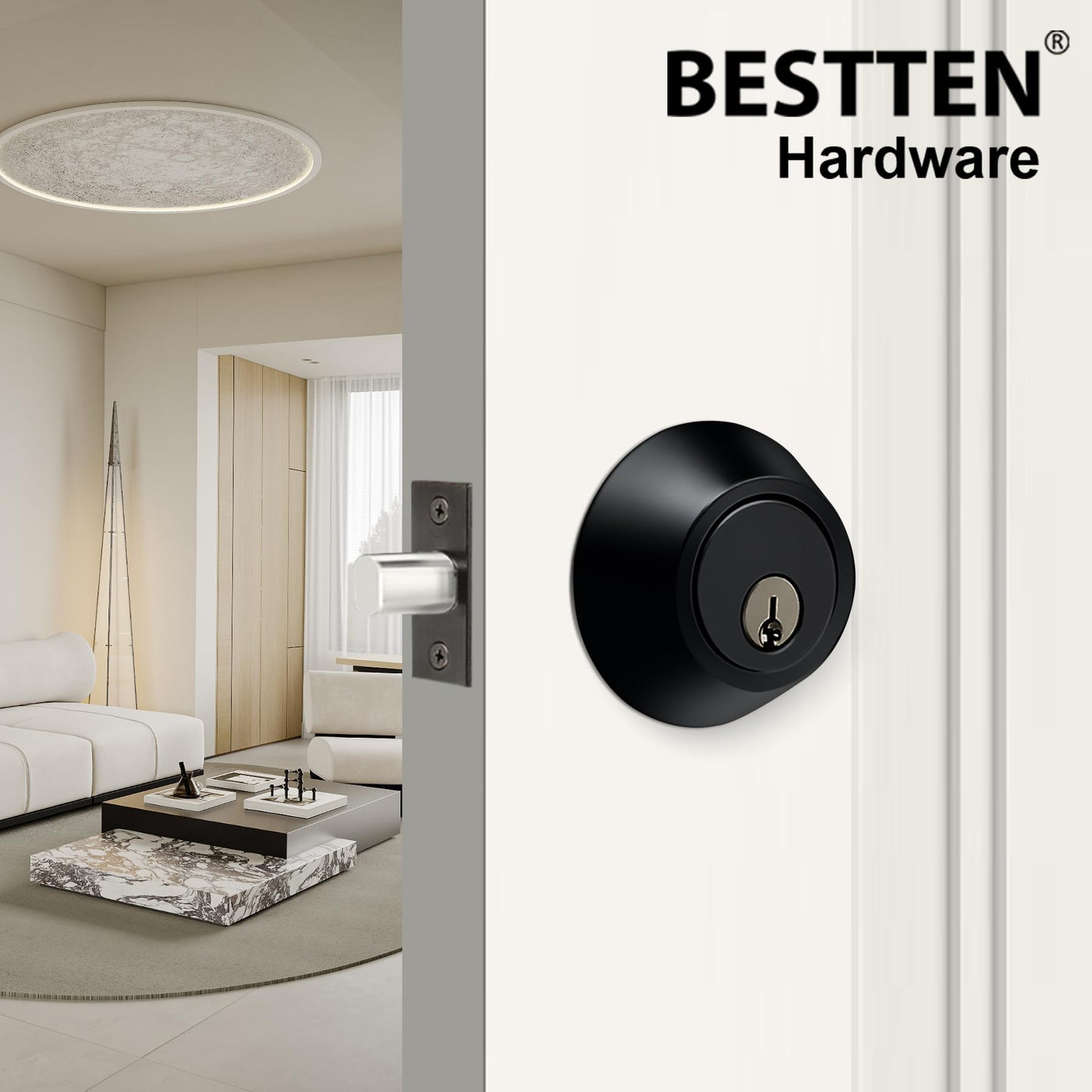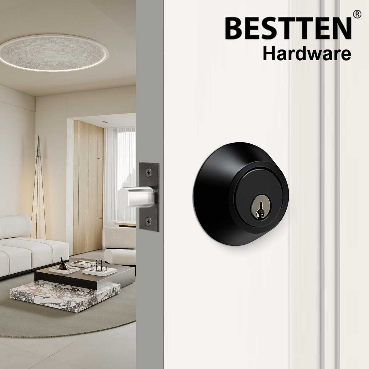 [3 Pack] BESTTEN Keyed Alike Deadbolt is the ideal solution for securing your home or garage with style and strength. This single cylinder door lock features a sleek matte black finish that not only enhances the aesthetic of your doors but also provides exceptional durability. Designed for both front and garage doors, this deadbolt lock combines functionality with modern design.