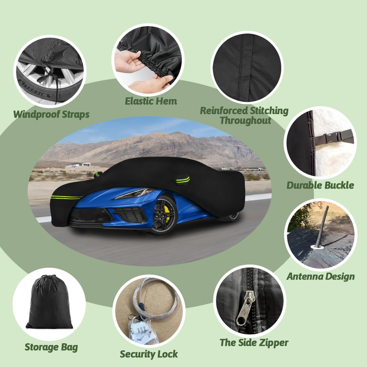 Beterny Car Cover For 2020-2025 Chevy Corvette C8, 6 Layers Waterproof All Weather Protection Heavy Duty Car Cover With Windproo