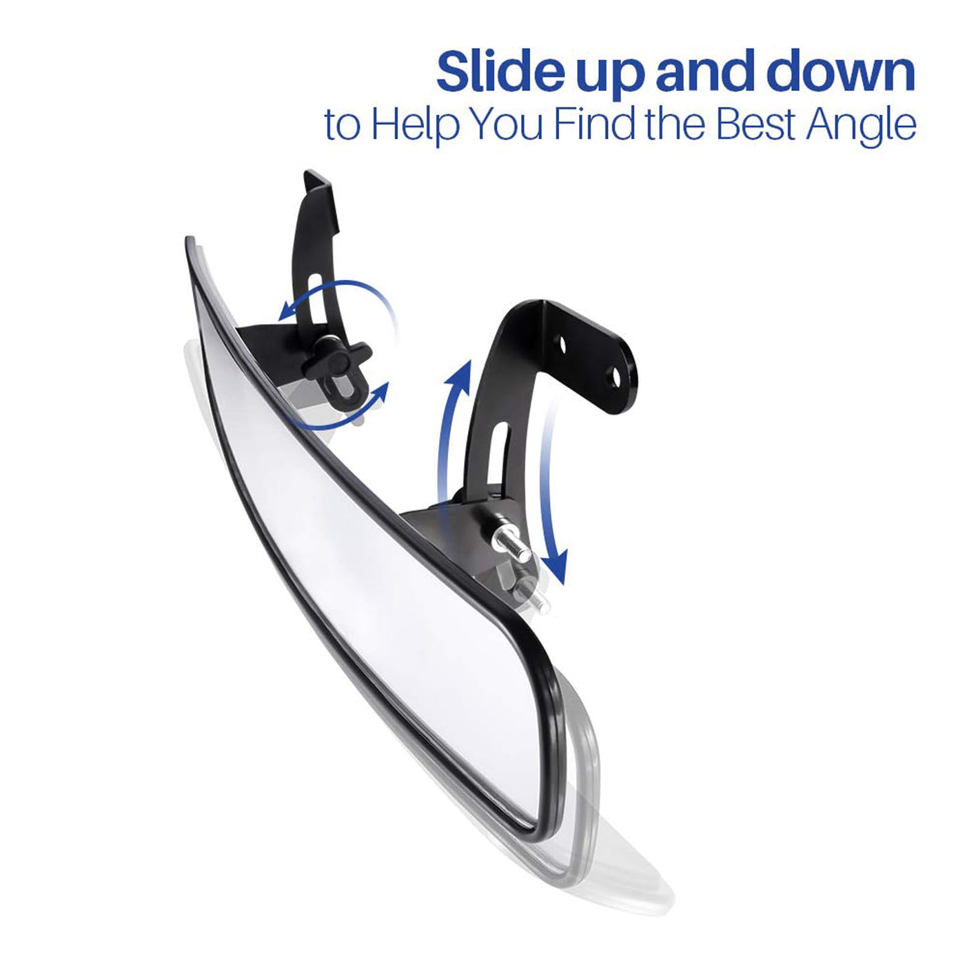 Q: Can I adjust the angle of the BETOOLL mirror once it's installed?A: Yes, the BETOOLL mirror features a unique design with a curved iron bracket that allows you to slide the mirror up and down to find the perfect viewing angle, enhancing your driving experience.