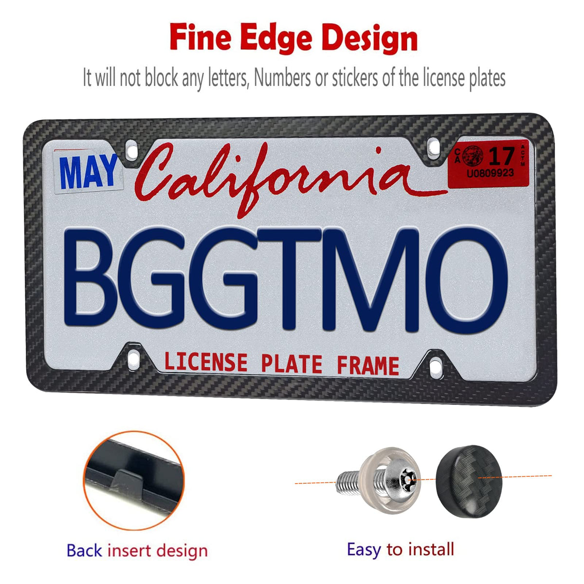 Q: Can the carbon fiber frame withstand harsh weather conditions?A: Yes, the BGGTMO Carbon Fiber License Plate Frame is designed with a high gloss clear finish and protective coating, making it resistant to fading and weather damage.
