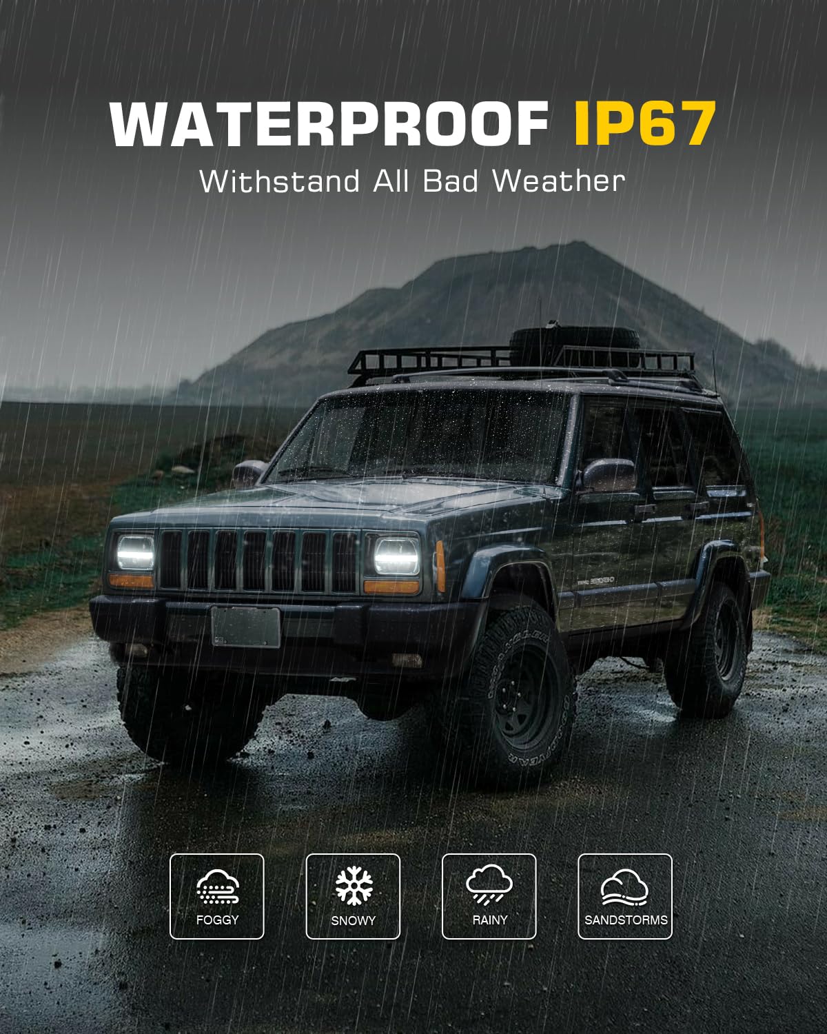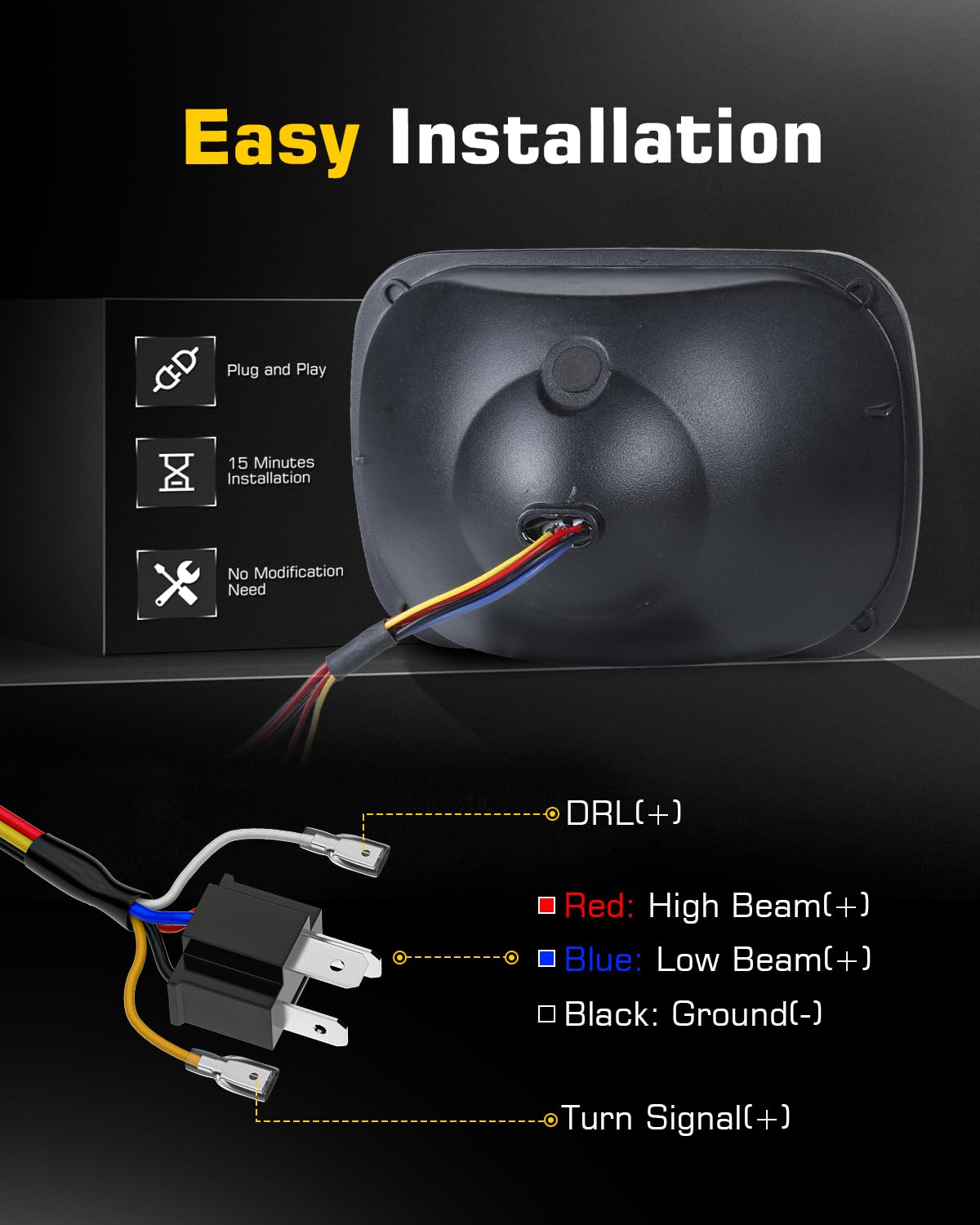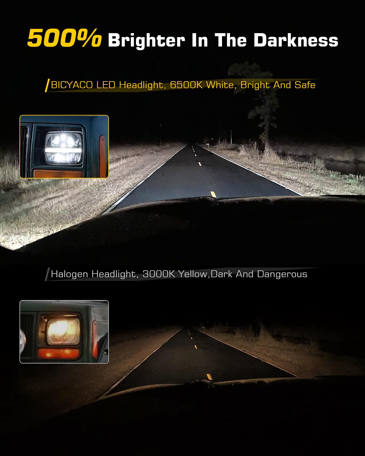 Bicyaco 2Pcs 105W 7X6 Led Headlight Reflector 5X7 Led Headlight White Drl Amber Turn Signal H6054 H5054 Hi/Lo Sealed Beam Headla
