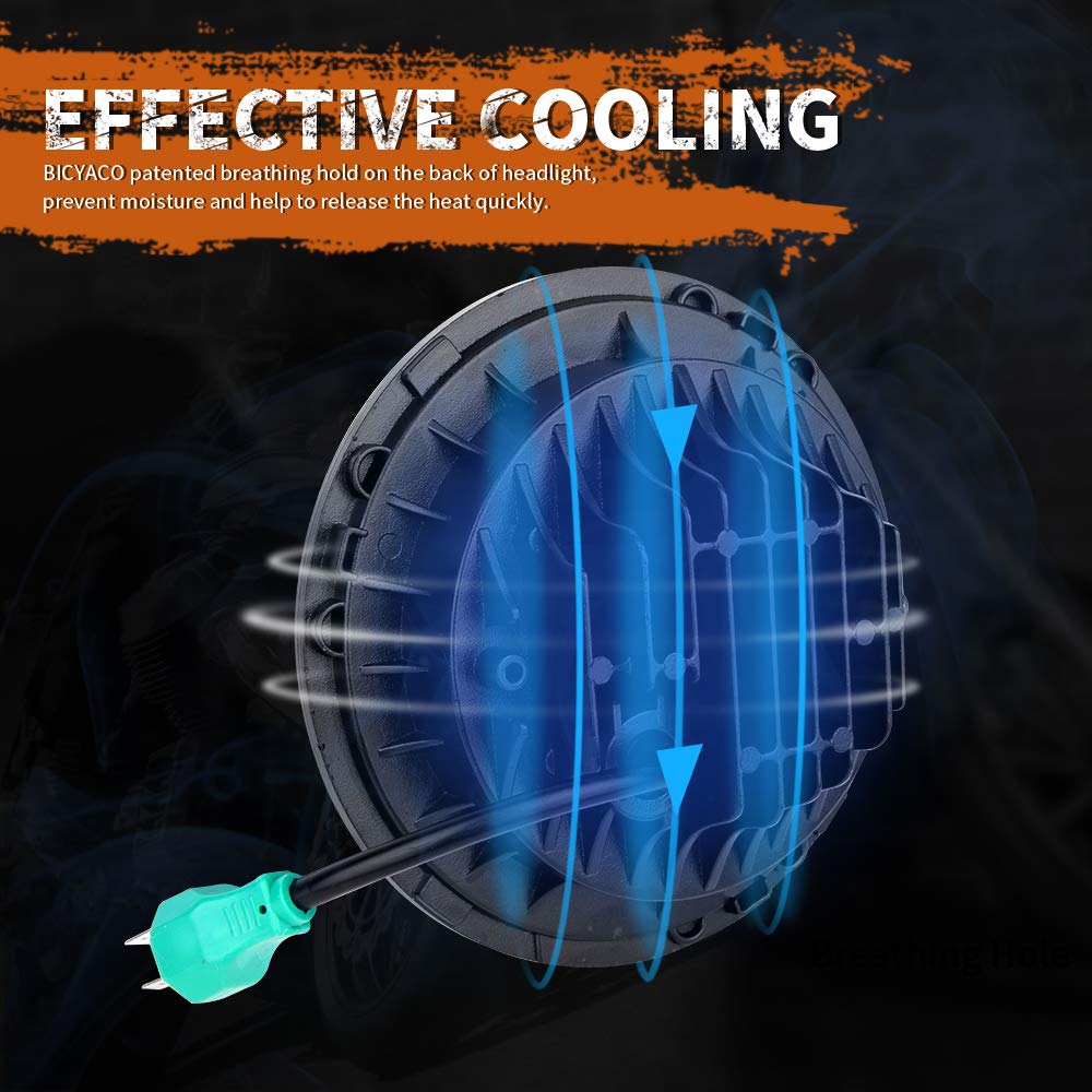 BICYACO DOT 7 Inch Motorcycle LED Headlight Headlamp Compatible with Harley Davidson Electra Glide Street Glide Fat Boy Road Kin