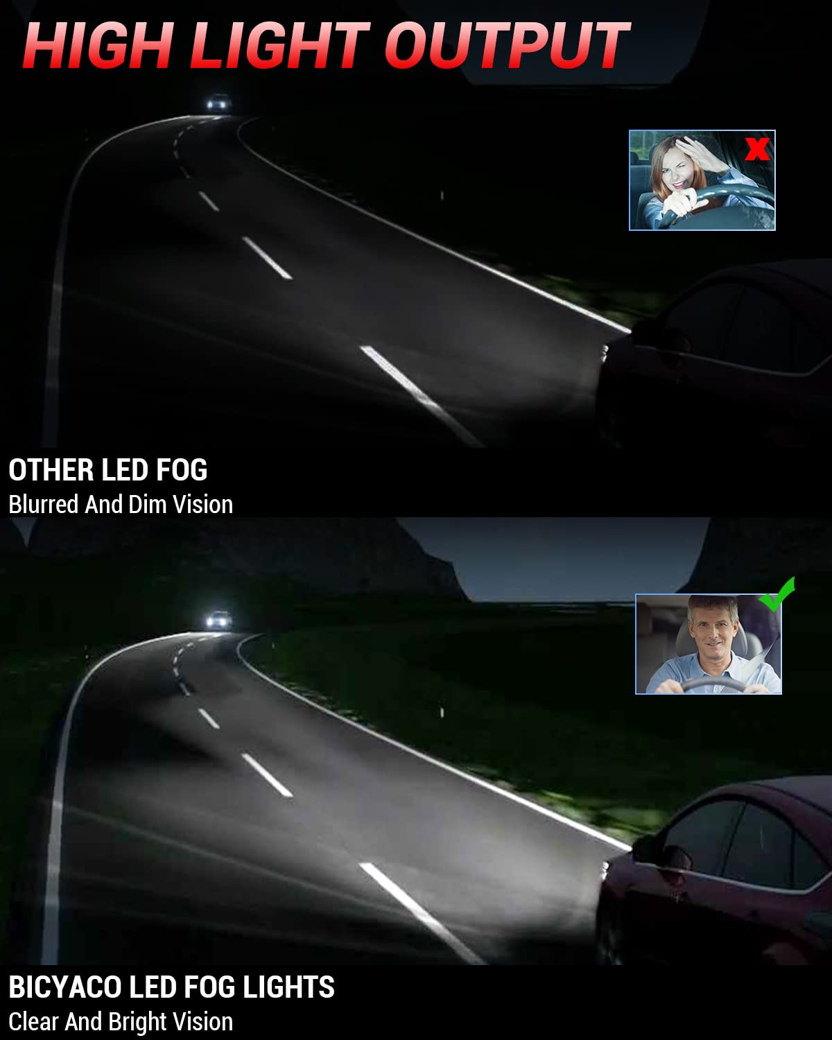 Q: What is the expected lifespan of the BICYACO LED Fog Lights?A: These fog lights have a lifespan of over 50,000 hours, thanks to the efficient heat dissipation design and high-quality aluminum alloy housing.