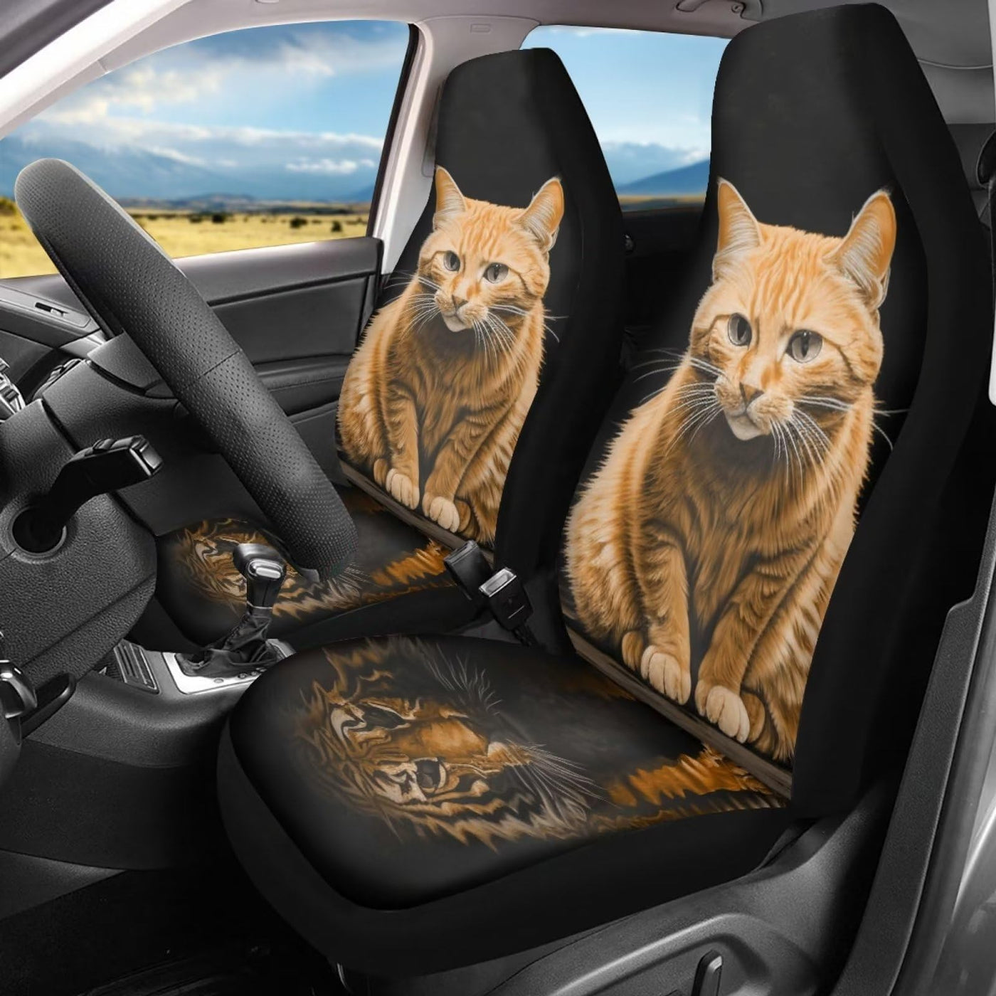 Bigcarjob 2 Pcs Animal Car Seat Cover Set For Front Only,Funny Cat And Tiger Print Vehicle Bucket Seat Cushion Pads Auto Seat Pr