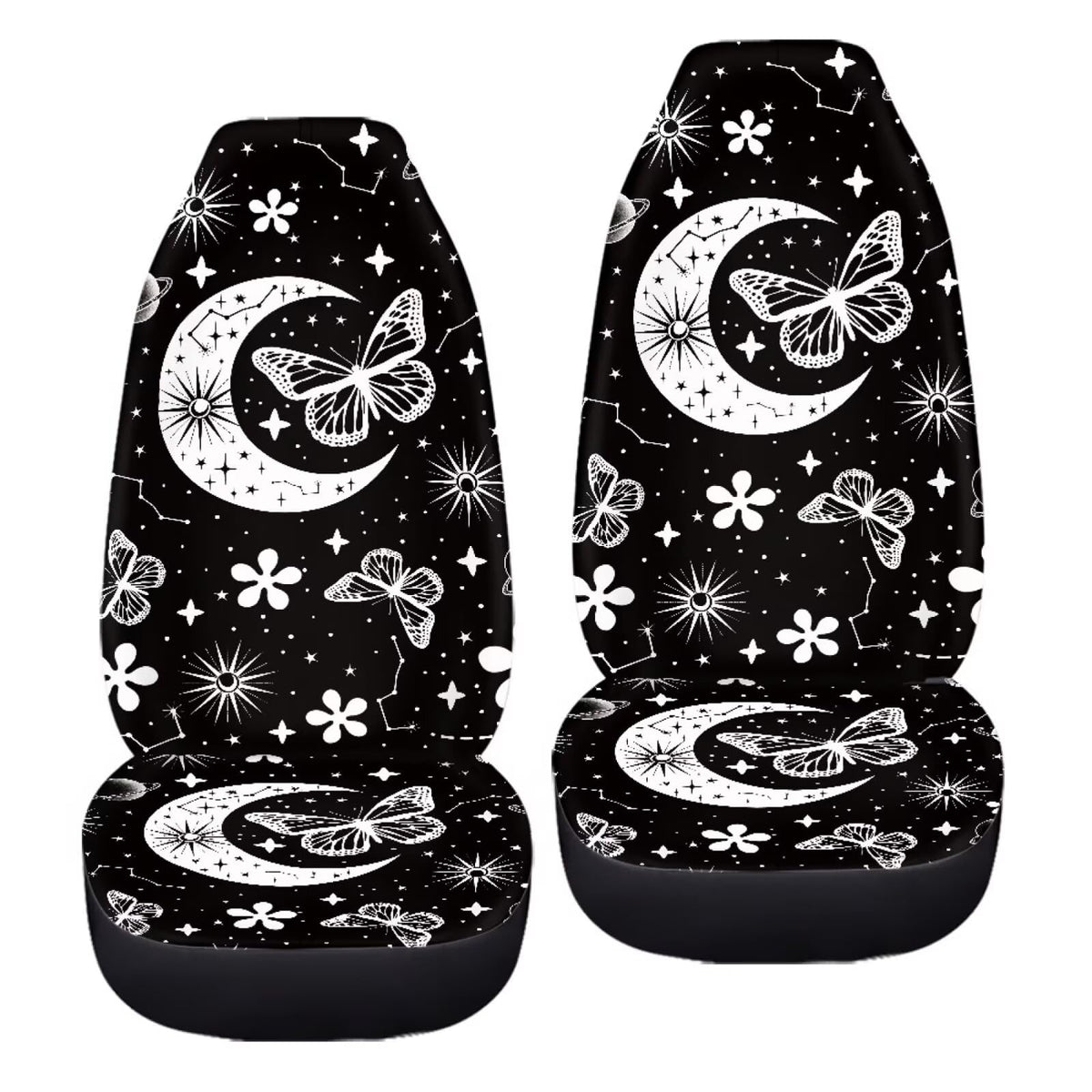 Bigcarjob Moon Butterfly Car Seat Cover Set For Front Seat Only,2 Pack Black Butterfly Auto Front Seat Protector Saddle Blanket