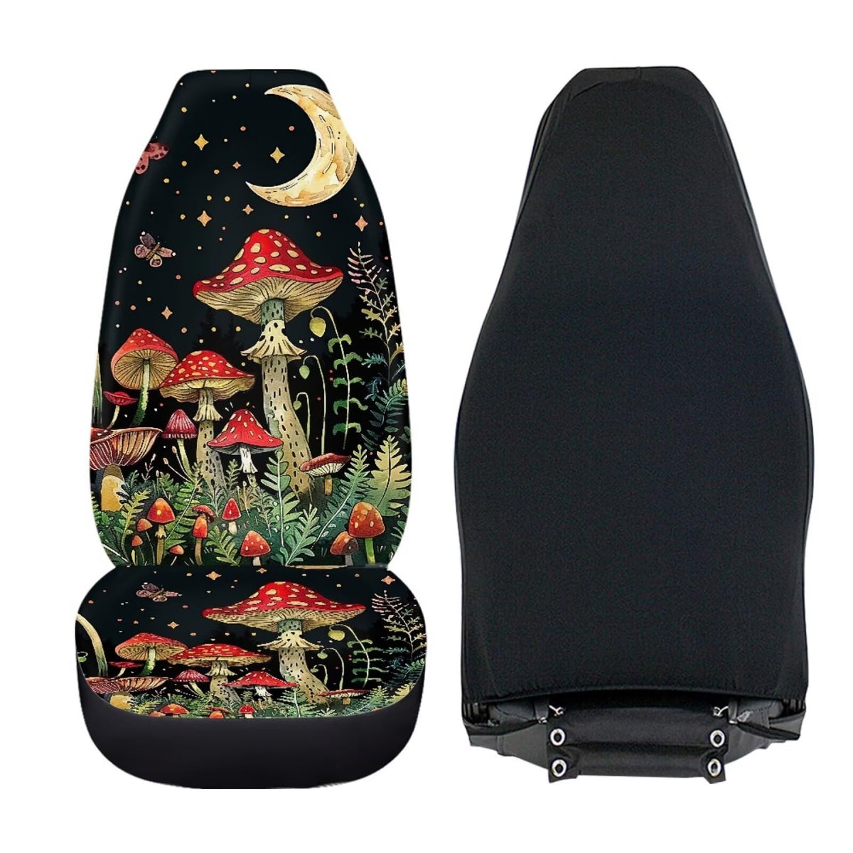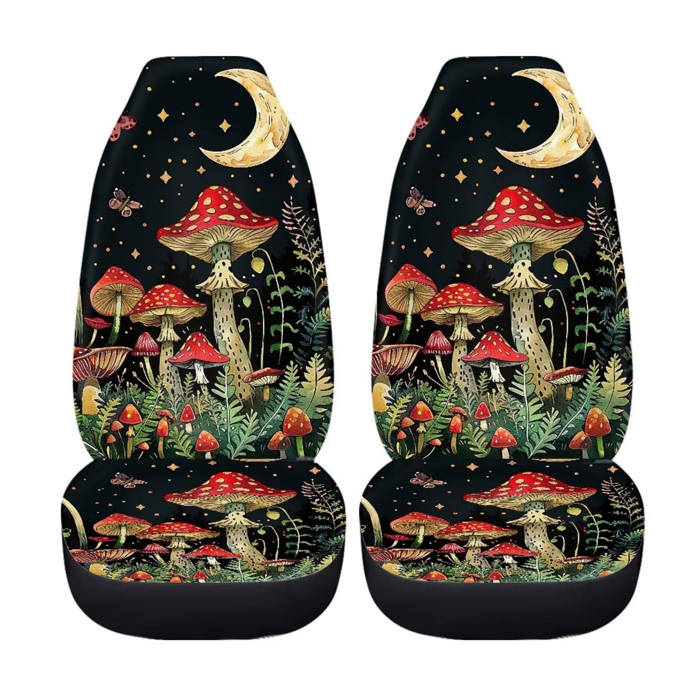 Bigcarjob Mushroom Print Car Seat Cover Set For Front Seat Only,Moon Star Mushroom Print Auto Front Seat Protector Full Set Car