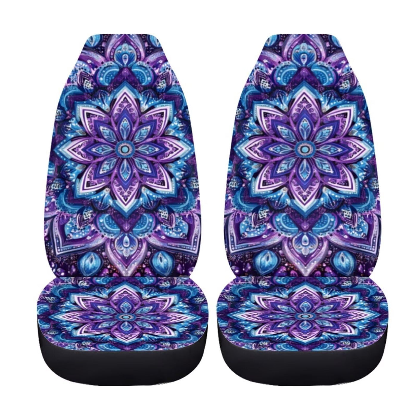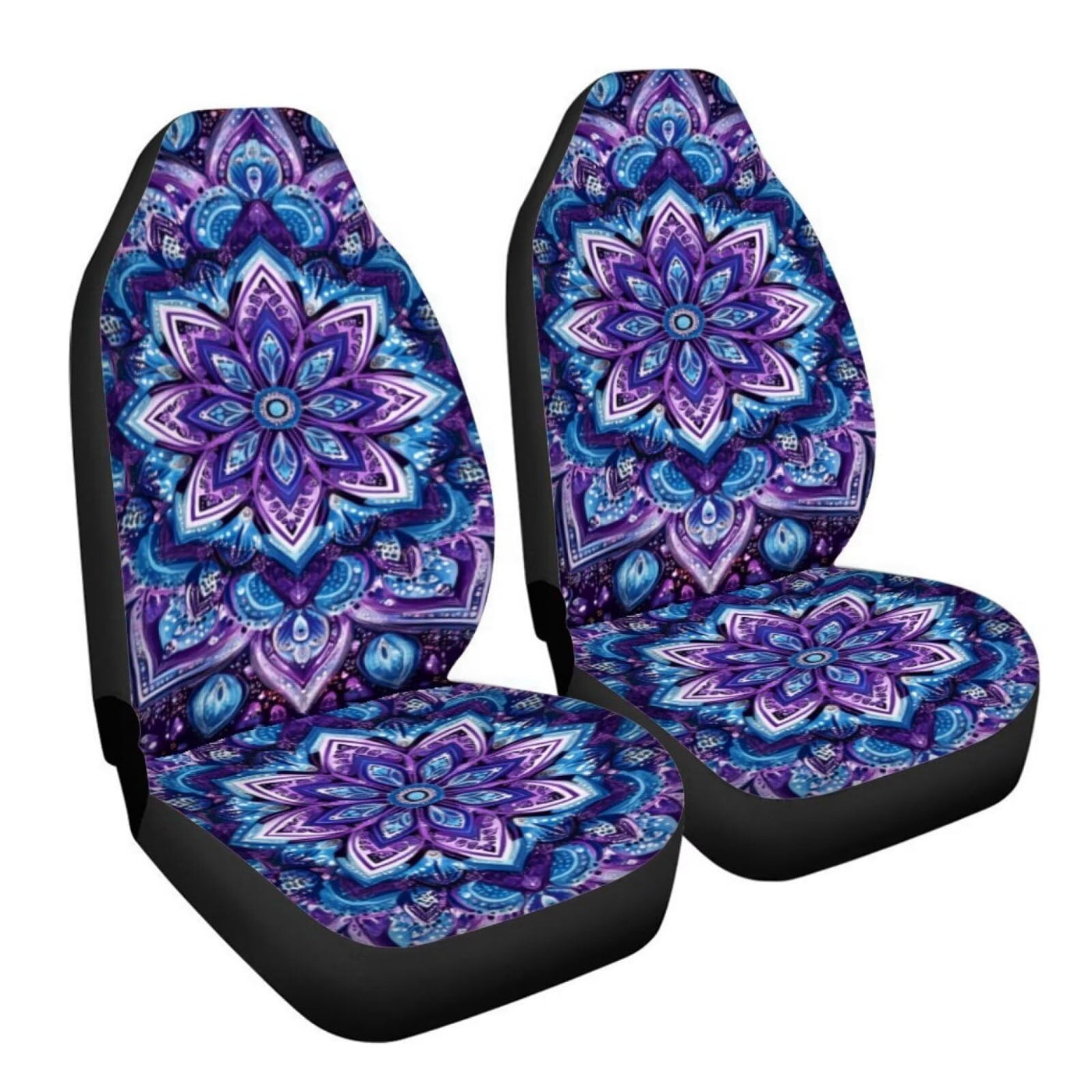 Bigcarjob Purple Lotus Car Seat Covers Set For Women Auto Interior Seat Protector Boho Lotus Car Accessories Set 2 Pcs Auto Fron
