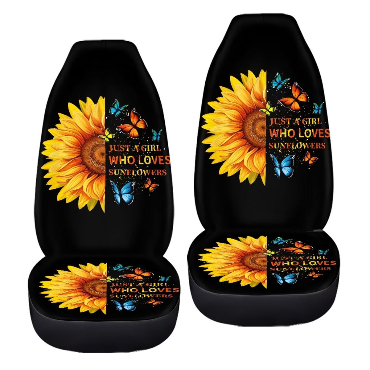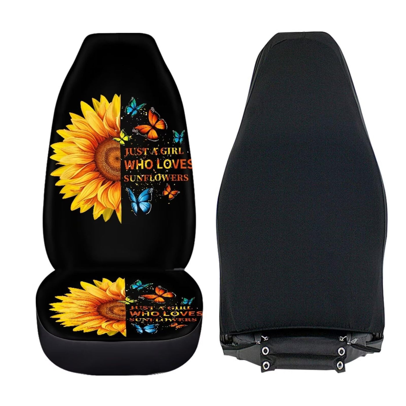 Bigcarjob Sunflower Print Car Seat Cover Set For Front Seat Only,Sunshine Sunflower Auto Front Seat Protector Full Set Butterfly