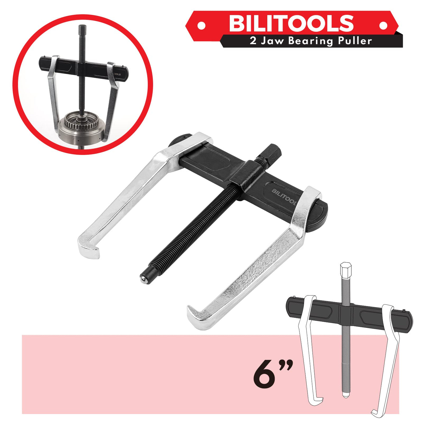 Bilitools 6'' 2-Jaw Gear Puller, Internal External For Removal Of Pulleys Flywheels Bearings & Gears