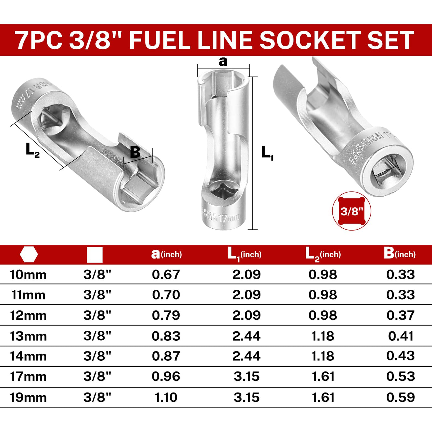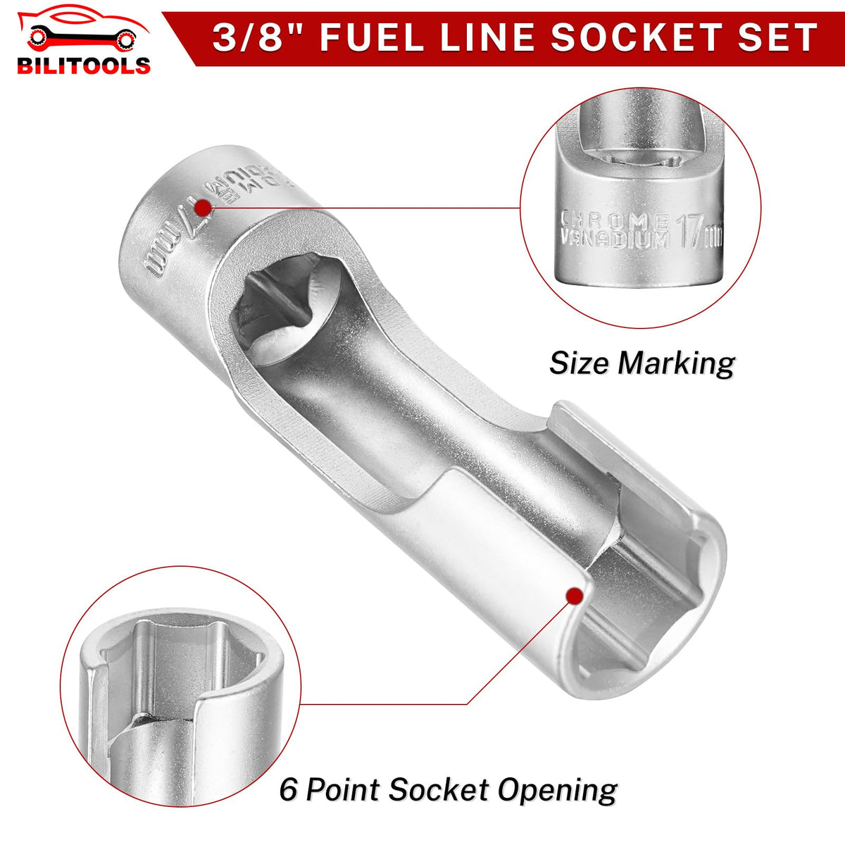 BILITOOLS Diesel Injector Fuel Line Socket Wrench Set, 3/8'' Drive 10-19mm, for Thermo Switches, EGT Sensors, and Fuel Lines, Fa