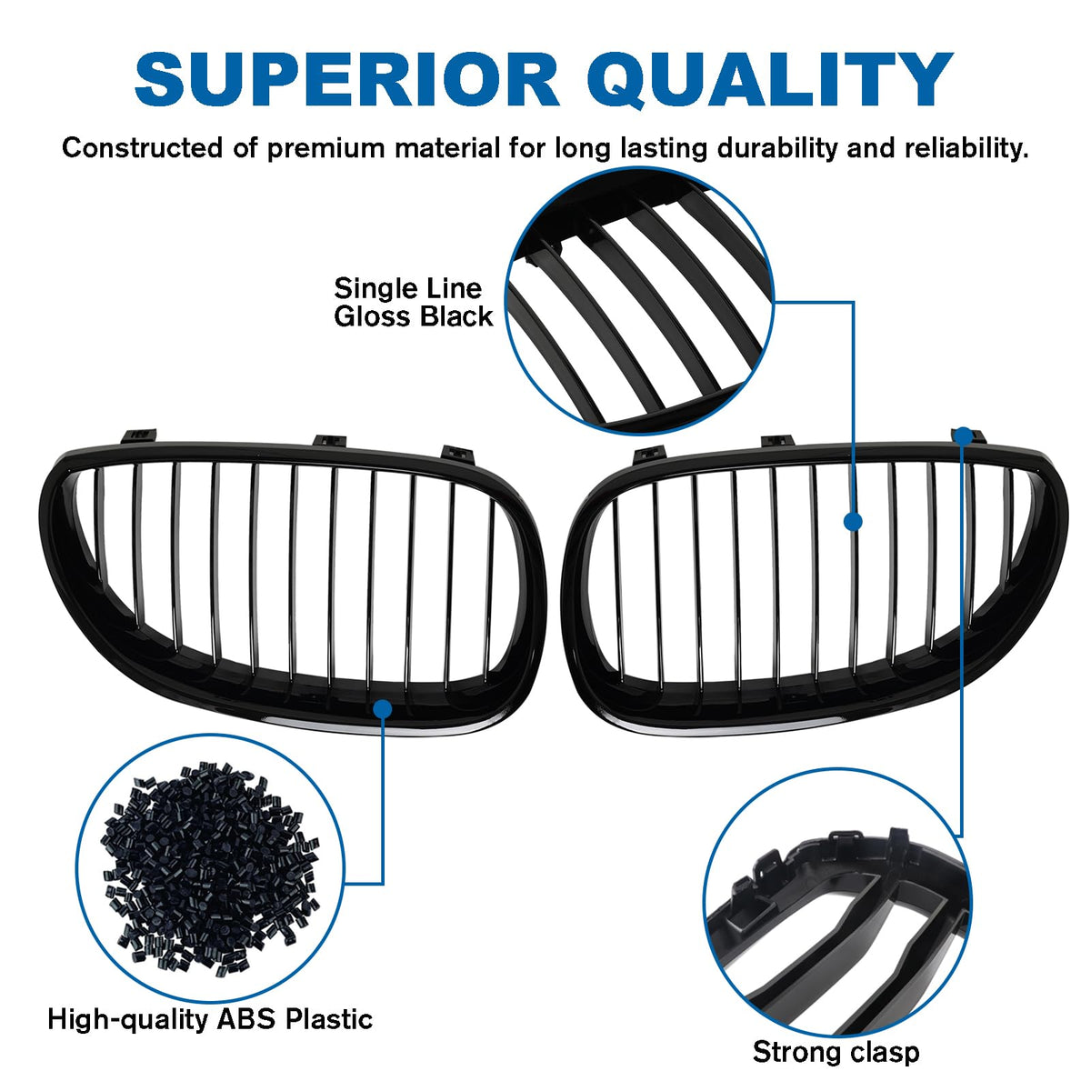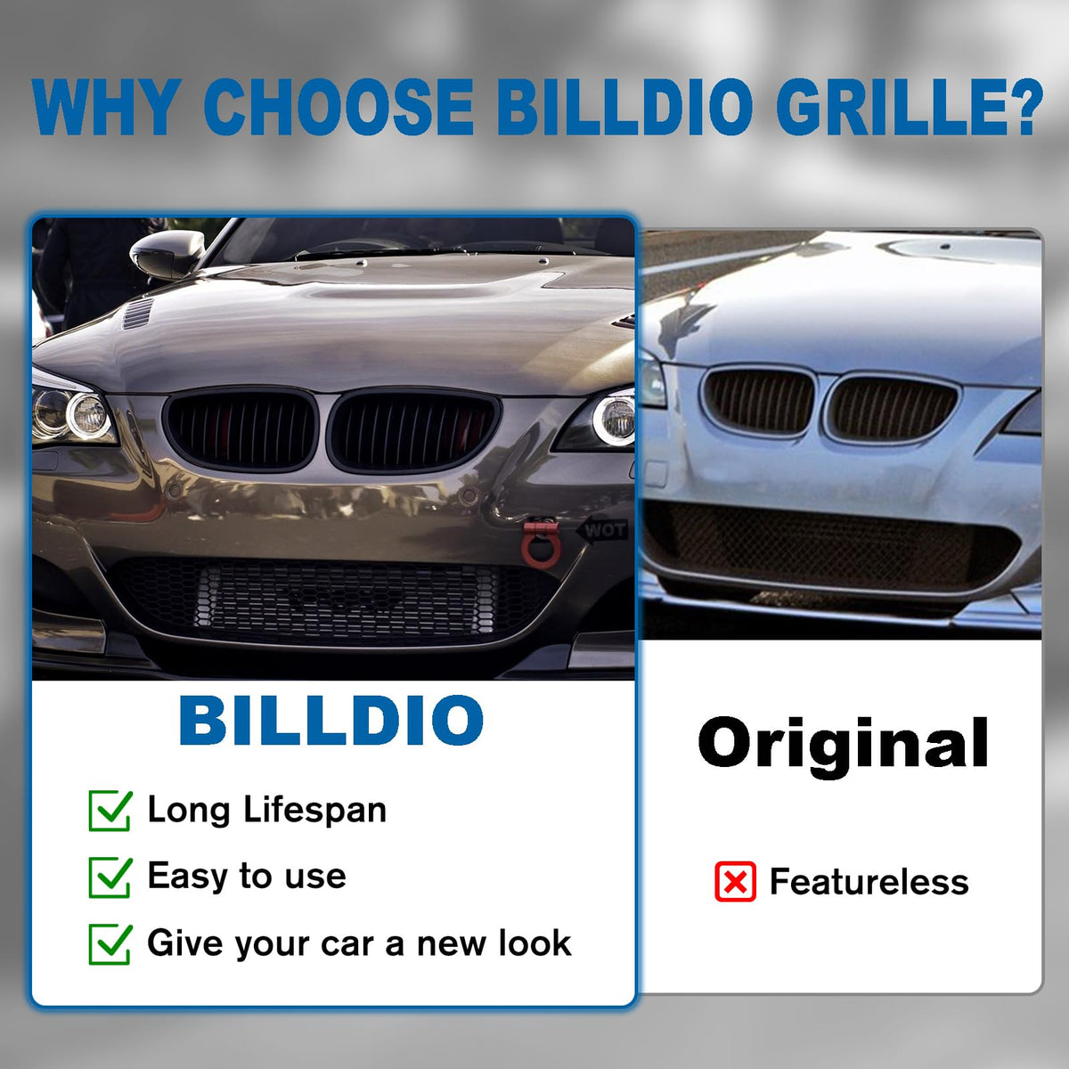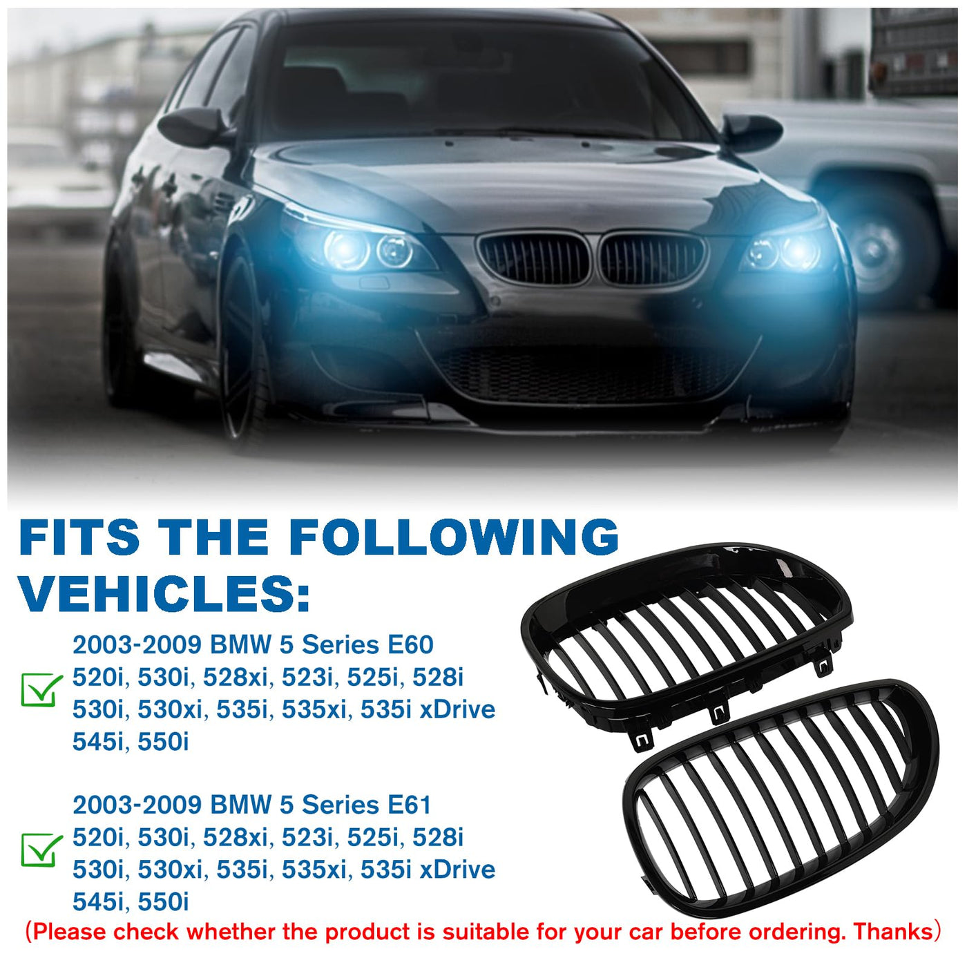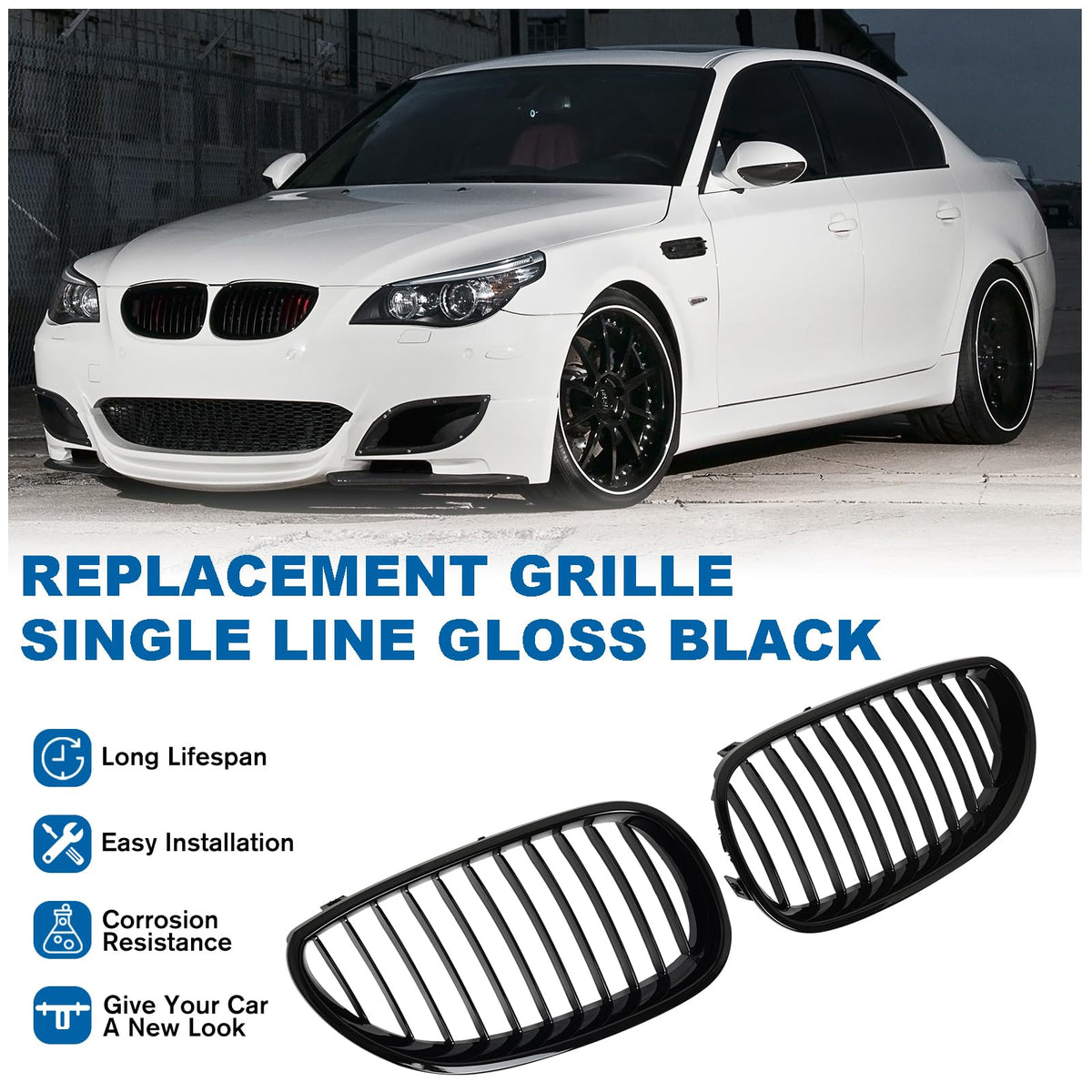 Billdio E60 Grille - Black Kidney Single Slats Grill Compatible With Bmw 5 Series E60 E61 2003-2009 520I 523I 525I 528I 530I 535