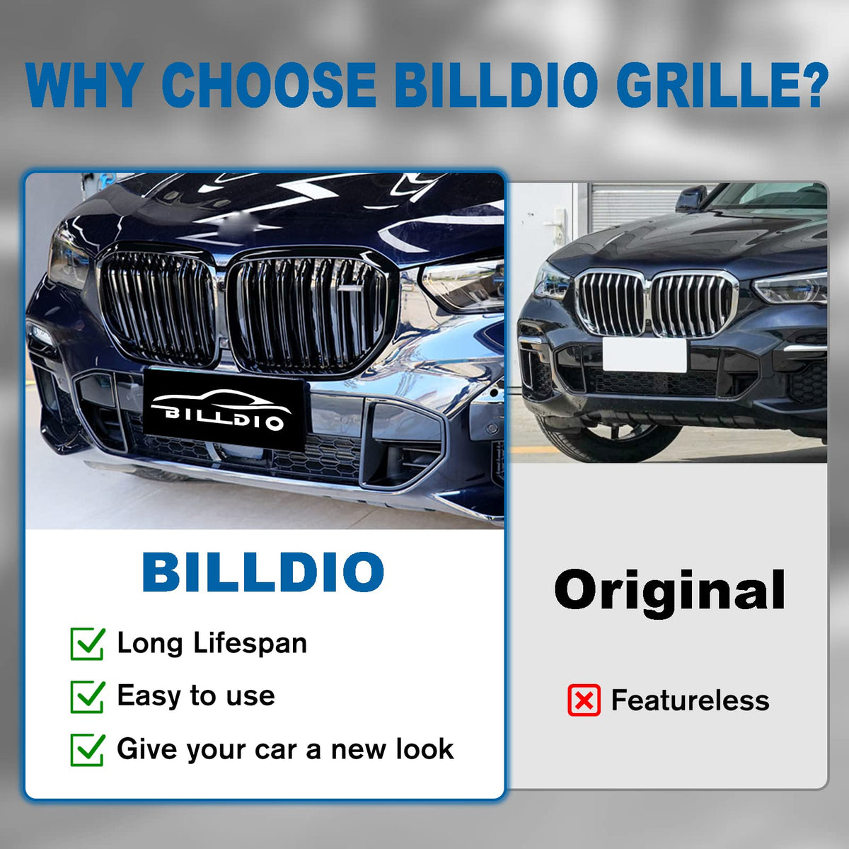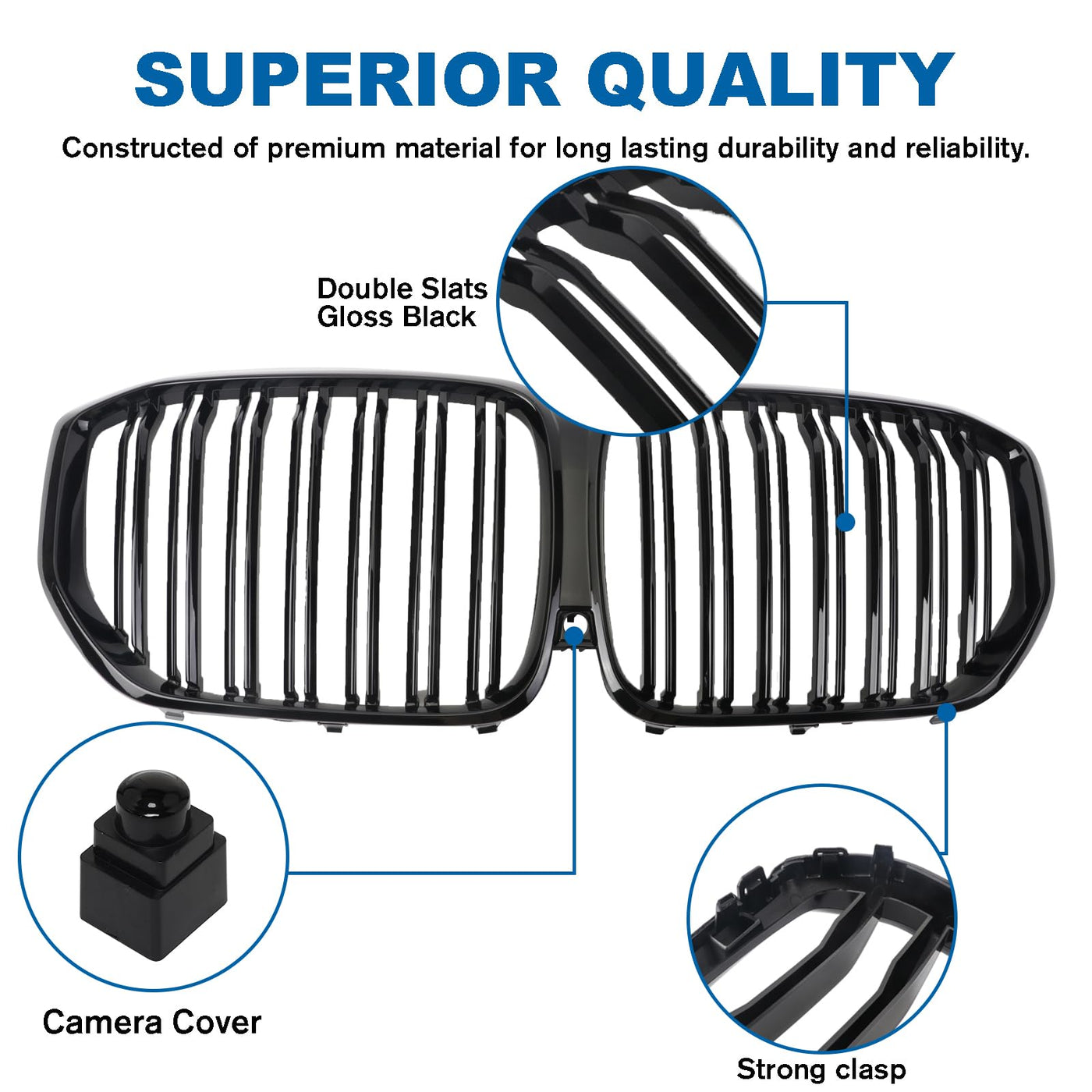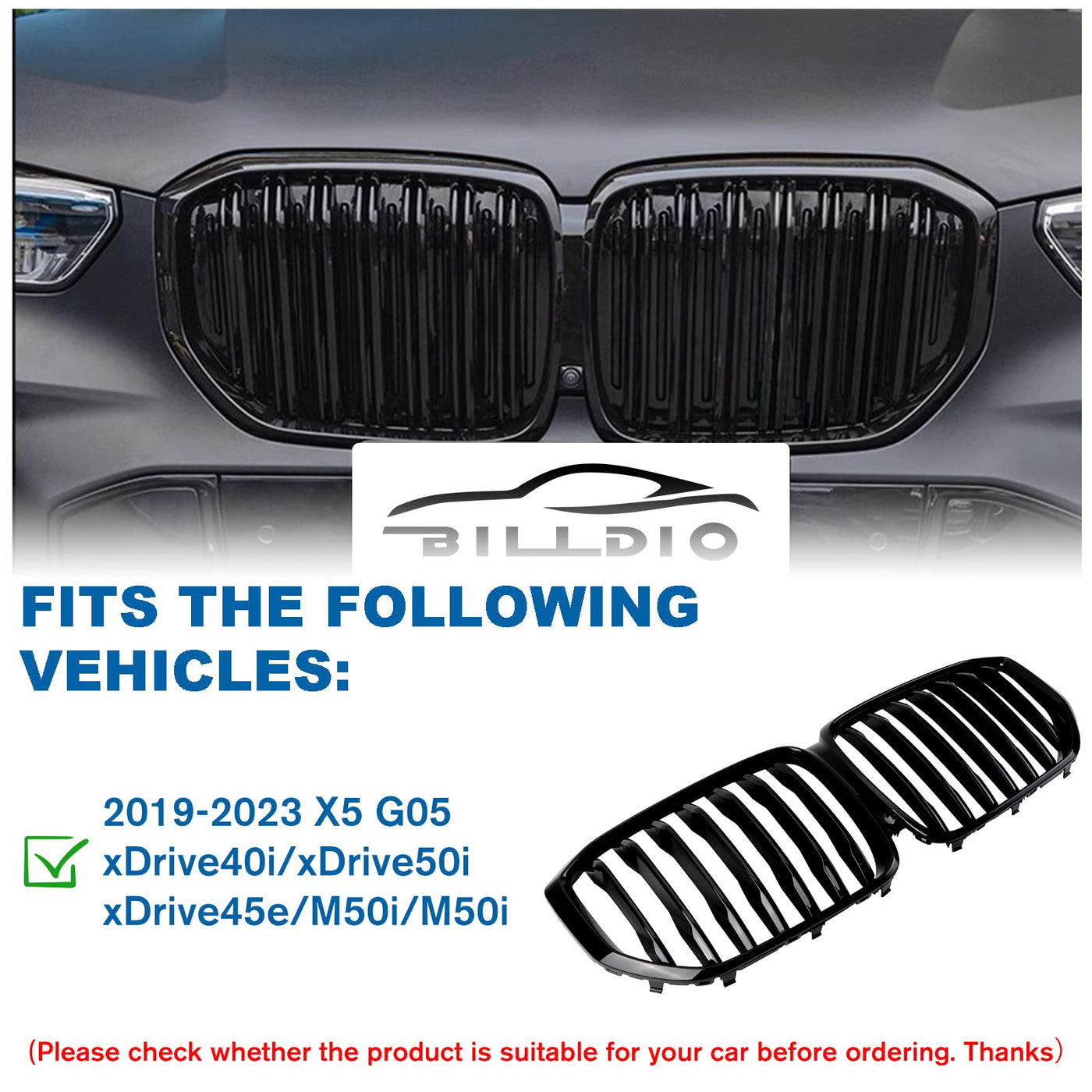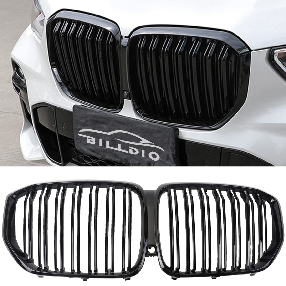 BILLDIO G05 Grill,Front Bumper Kidney Grille Compatible with 2019 2020 2021 2022 2023 X5 G05(ABS Gloss Black Kidney Grille,Doubl