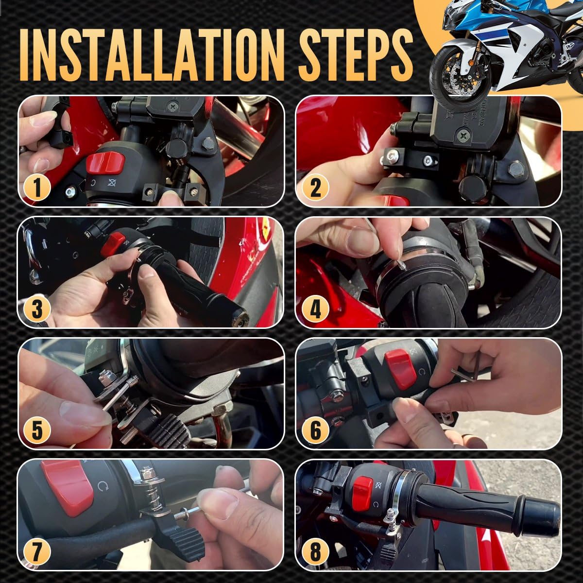 Q: What motorcycles is the BILLFARO Universal Throttle Lock compatible with?A: The BILLFARO Universal Throttle Lock is compatible with most motorcycles, including popular brands such as Honda, Kawasaki, Yamaha, Suzuki, and BMW. It can accommodate handlebars with 7/8" and 1" diameters, making it a versatile accessory for various models.