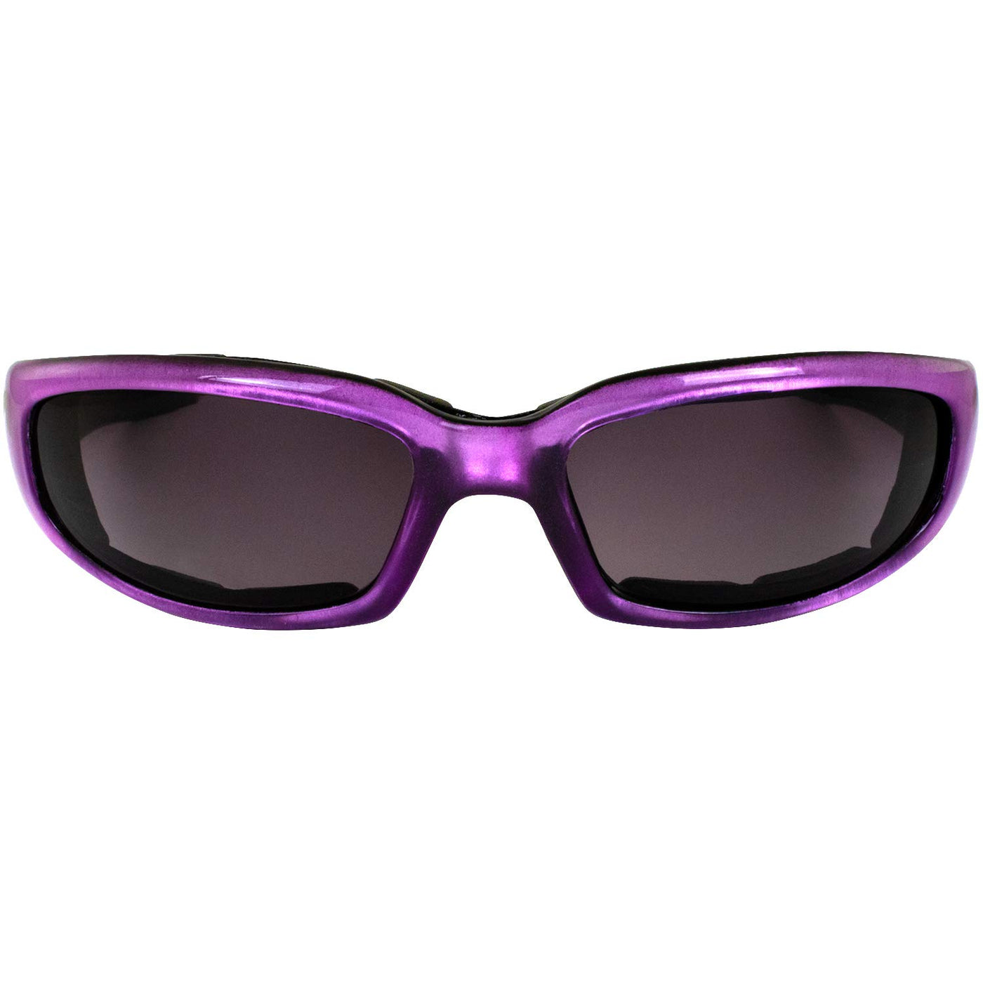 Birdz 2 Pairs Of Eyewear Chill Women'S Padded Motorcycle Sunglasses, Purple Frames With Clear & Super Dark Lenses