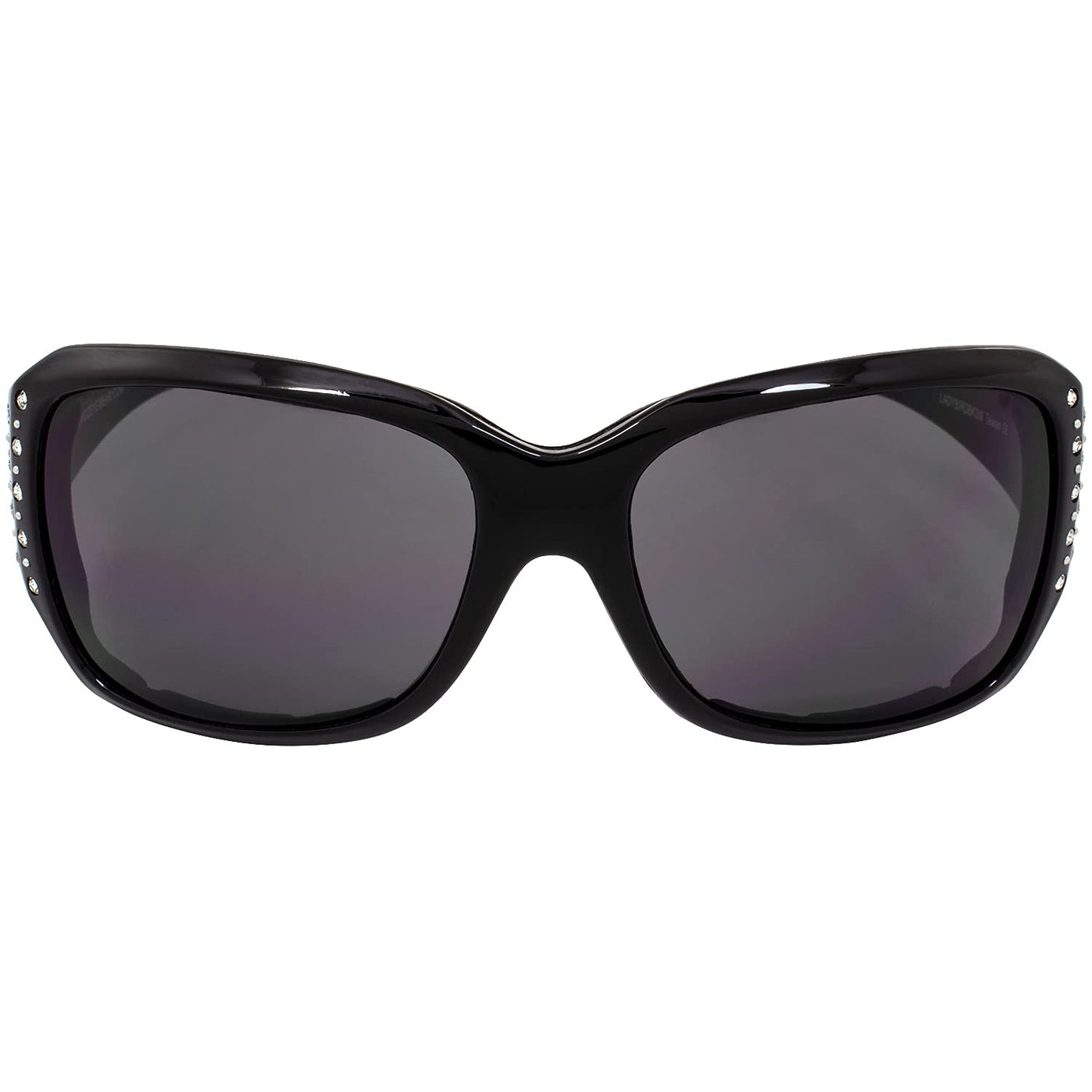 Glam Up Your Motorcycle Look With A Pair Of Our Birdz Eyewear Ladybird Sports Fashion Sunglasses Featuring Wide Square Glossy Black Frames Adorned With Shimmering Rhinestones At The Temples. Featuring Vented Eva Foam Padding To Shield Your Eyes From Wind And Debris, The Larger Frame And Comfortable Modern Design Gives Your Eyes Ample Coverage As Well As Excellent Protection From The Elements. Shatterproof Polycarbonate Lenses Boast An Anti-Fog Coating For Clarity Of Vision In All Conditions. Available In Smoke And Clear Lenses, You Can Wear Our Ladybirds On The Road Or On Your Regular Errands And Even Glam Up Your Sporting Activities While Getting Nothing Less Than The Best Protection Possible. You And Your Eyes Deserve It!