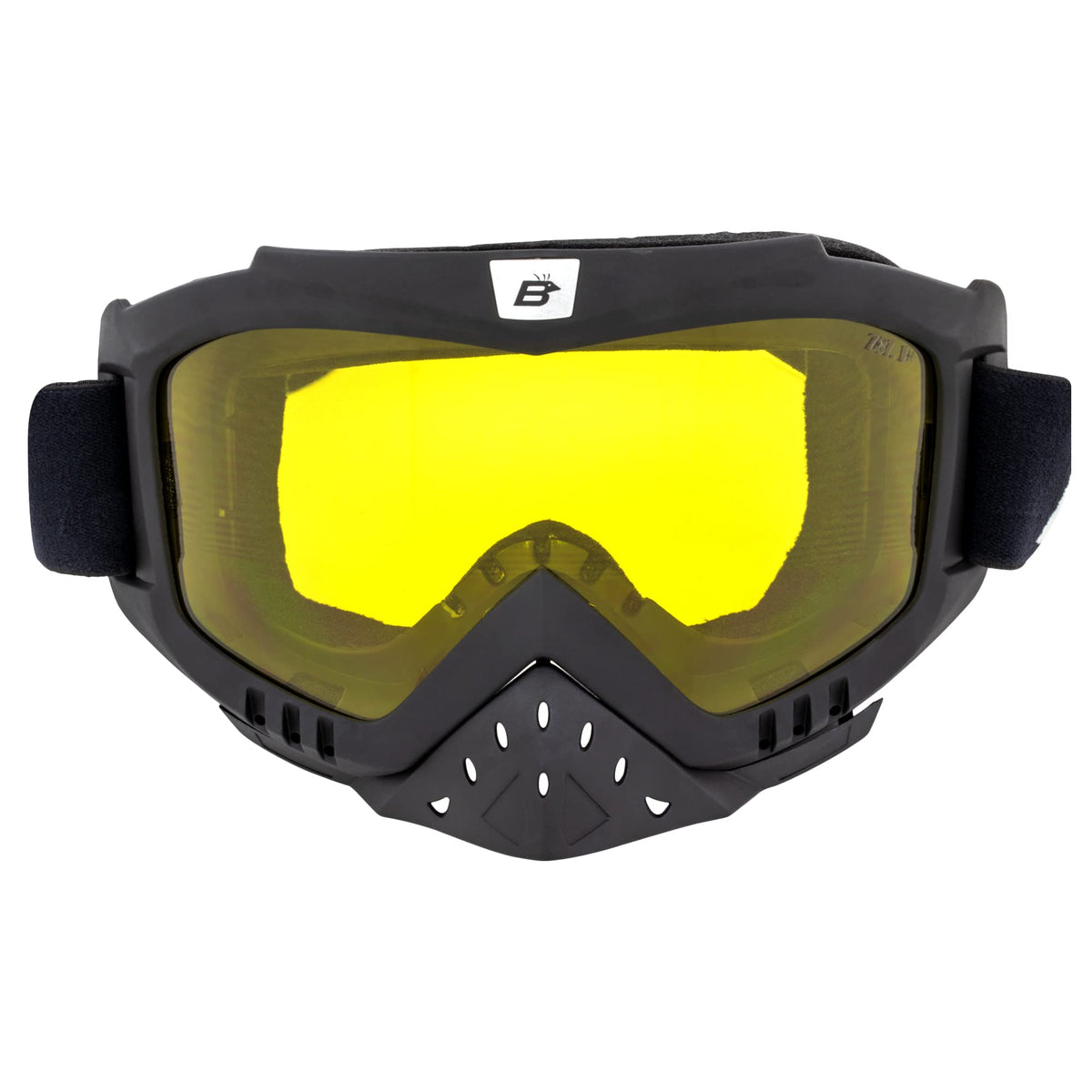 Birdz Eyewear Toucan Motorcycle Atv Utv Motocross Ski Padded Goggles With Detachable Nose Guard Black Frame With Smoke Lens (Yellow)